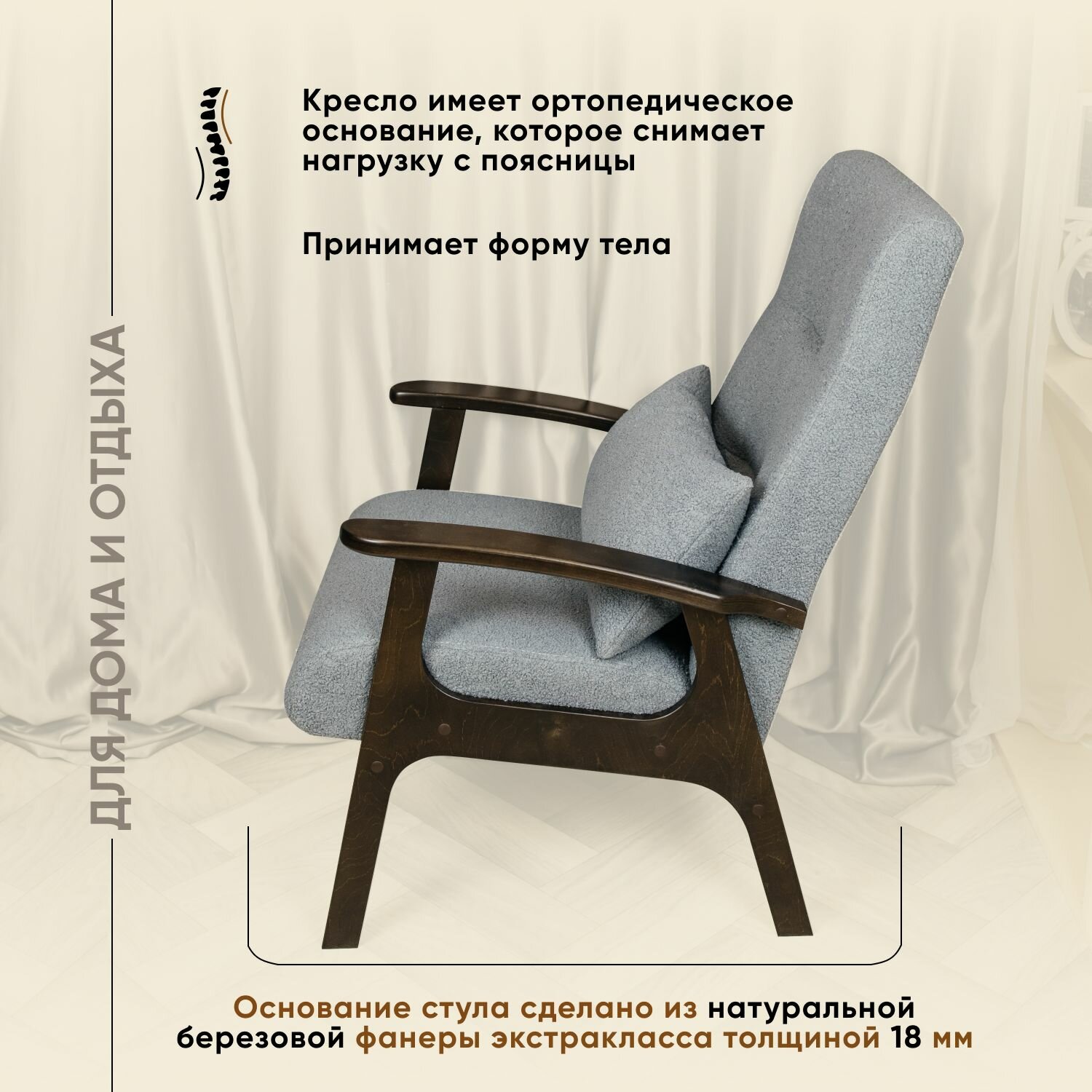 Кресло Норди с подушкой на деревянных ножках с подлокотниками, Букле, LADY MAY