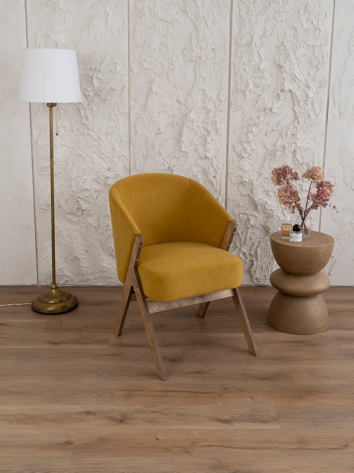 Кресло Лаундж Zasidelis мягкое, велюр, до 130 кг 83x56x79 горчичный/ коричневый