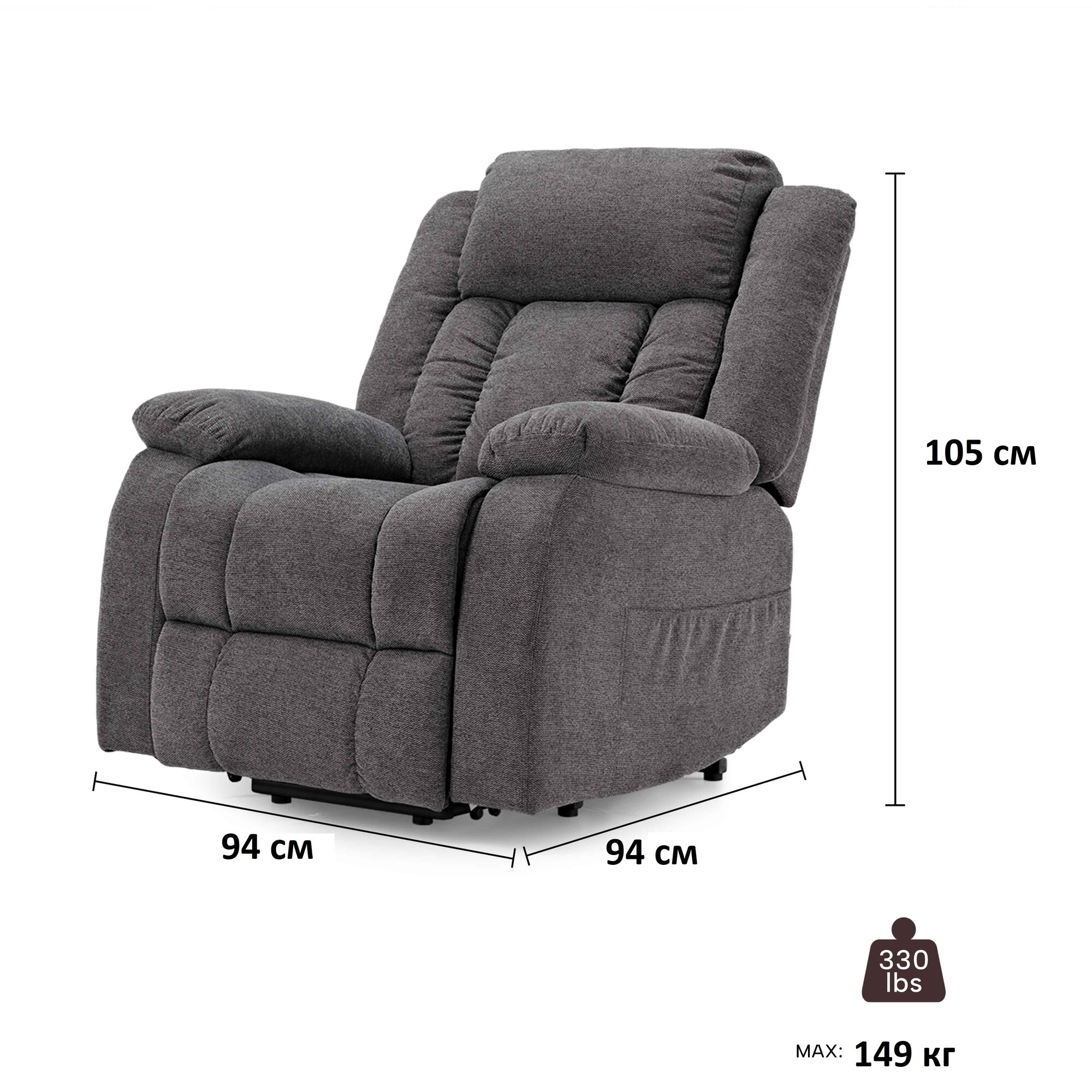 Купить Кресло-реклайнер Eureka GER02 с подъемным механизмом, серый