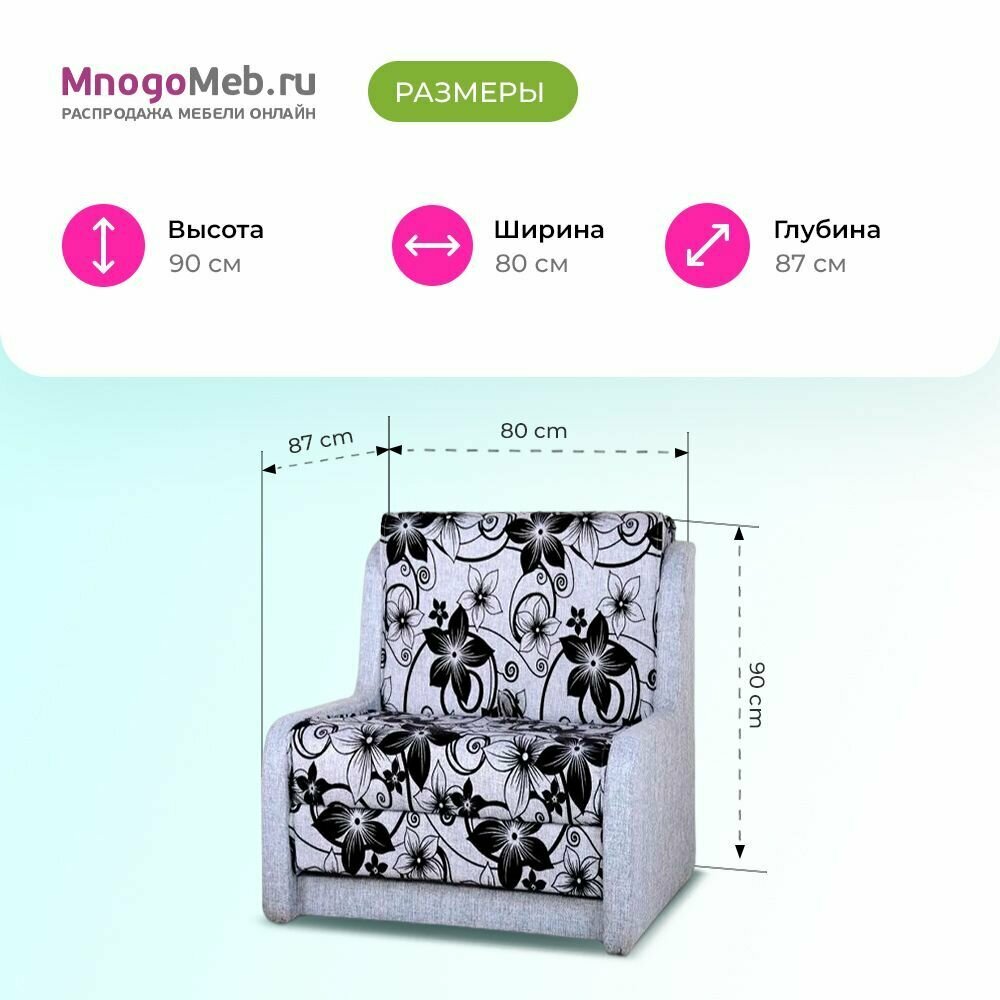 Кресло-кровать раскладное Даллас, механизм еврокнижка, без подлокотников, серый, рогожка, цветы интересное: