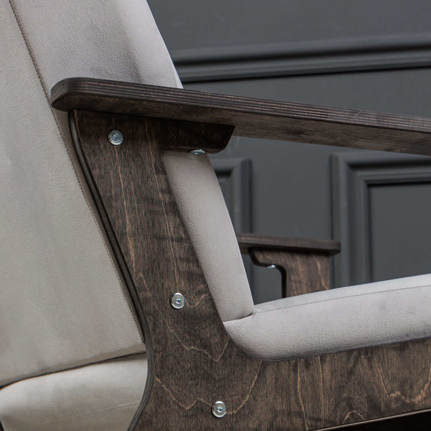 Мягкое кресло для дома и гостиной МЯГКАЯ ПОСАДКА ретро серое букле