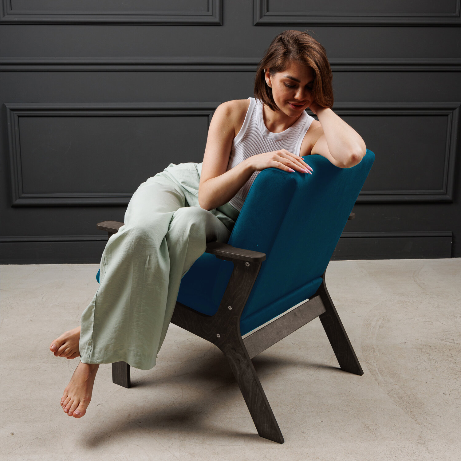 Мягкое кресло для дома и отдыха МЯГКАЯ ПОСАДКА ретро мини бирюзовое
