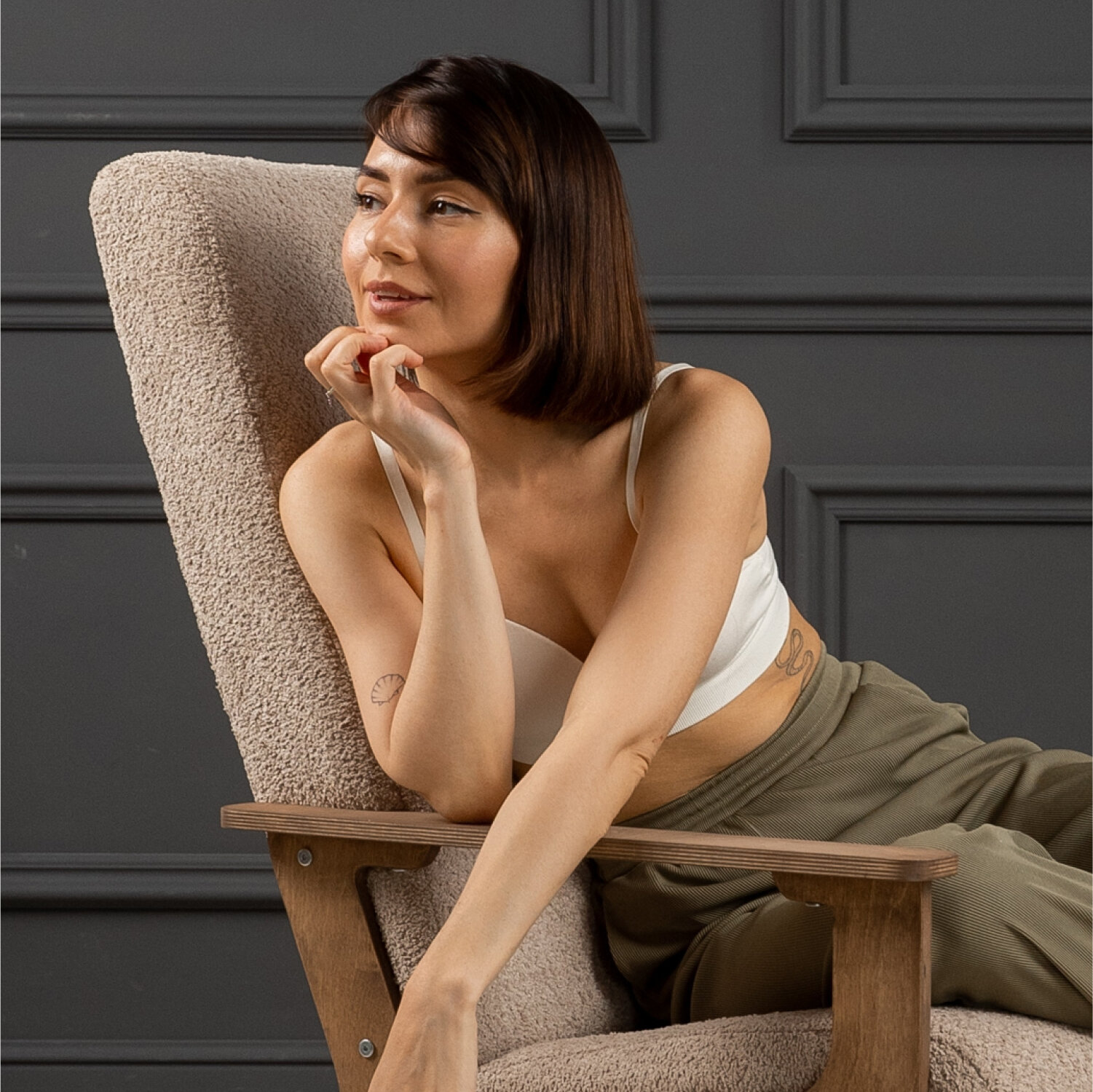 СохранитьМягкое кресло для дома мягкая посадка ретро коричневое букле интересное: