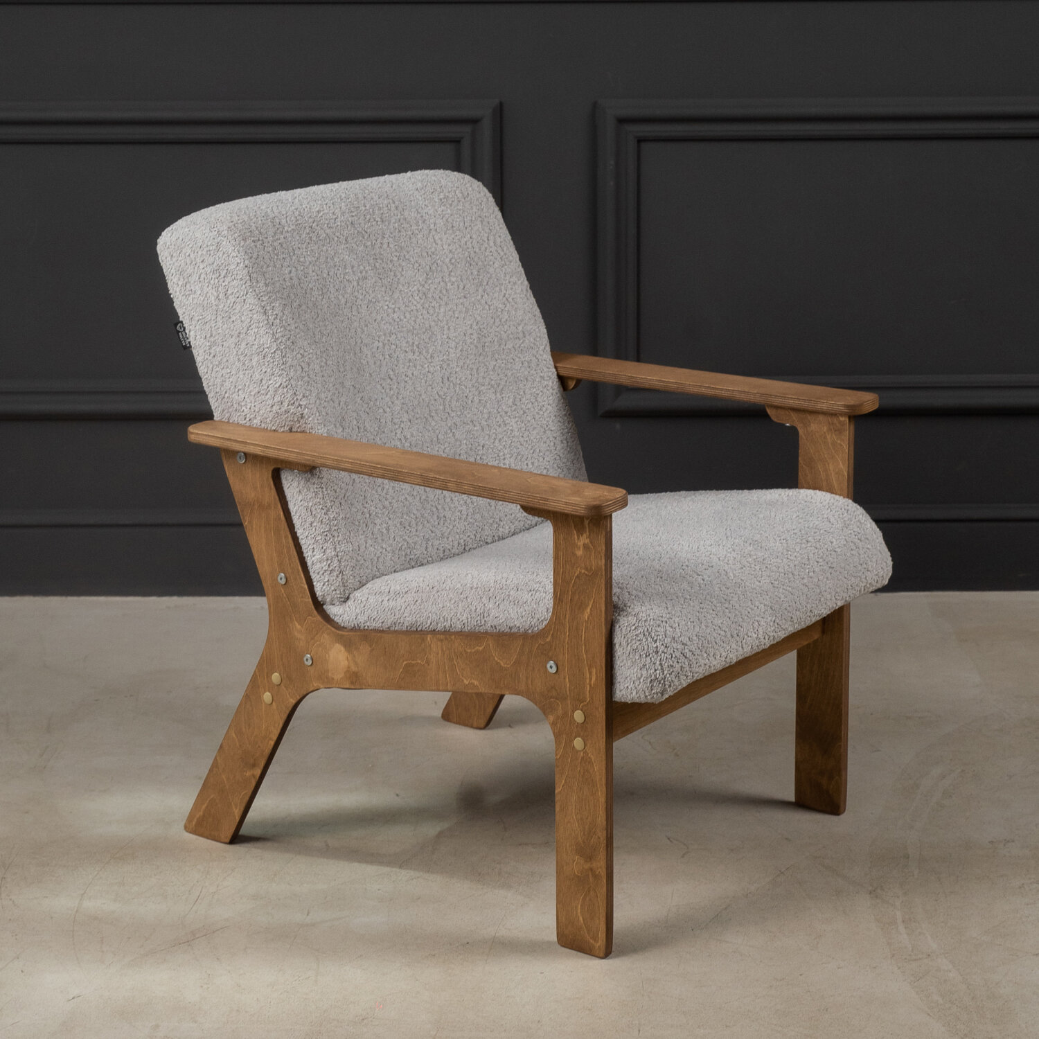 Мягкое кресло для дома и гостиной МЯГКАЯ ПОСАДКА ретро серое букле