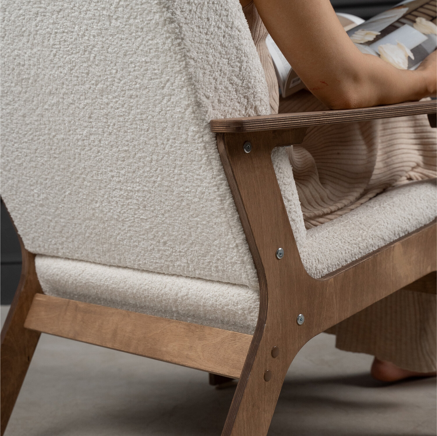 Мягкое кресло для дома и гостиной МЯГКАЯ ПОСАДКА ретро белое букле