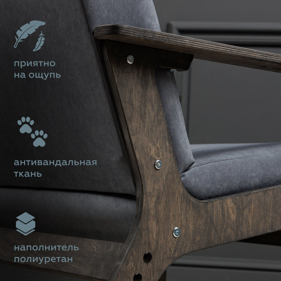 Мягкое кресло для дома и отдыха МЯГКАЯ ПОСАДКА ретро мини серый