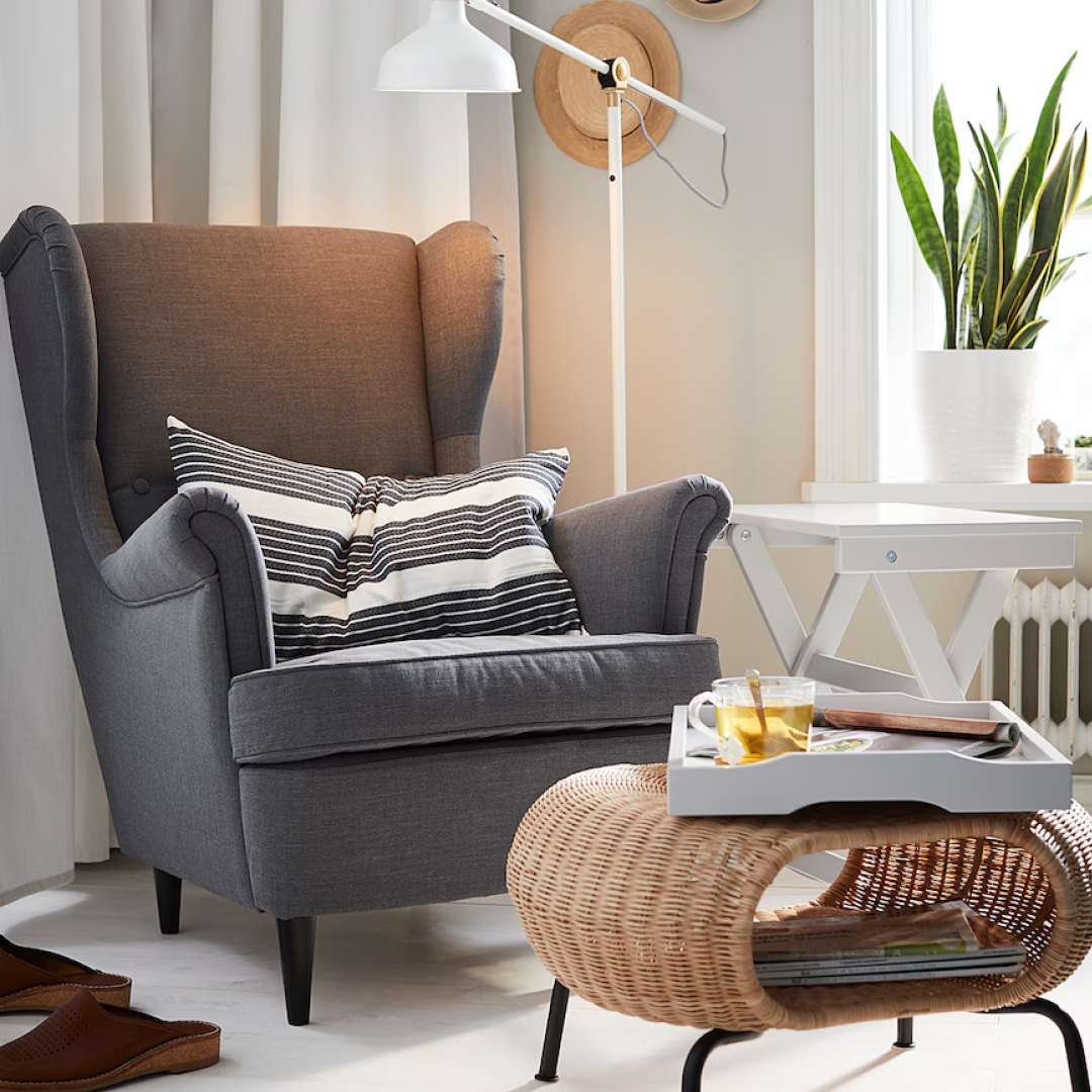 Мягкое кресло с высокой спинкой СТРЭНД (STRANDMON), рогожка, серое