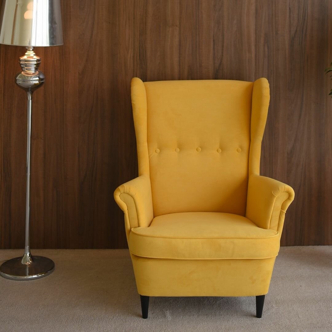 Кресло мягкое с высокой спинкой СТРЭНД (STRANDMON) ULYRA YELLOW, велюр, желтый