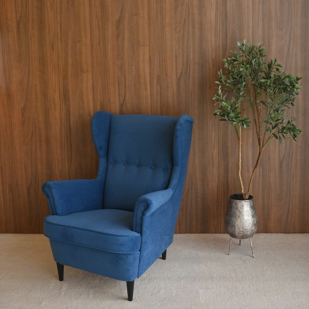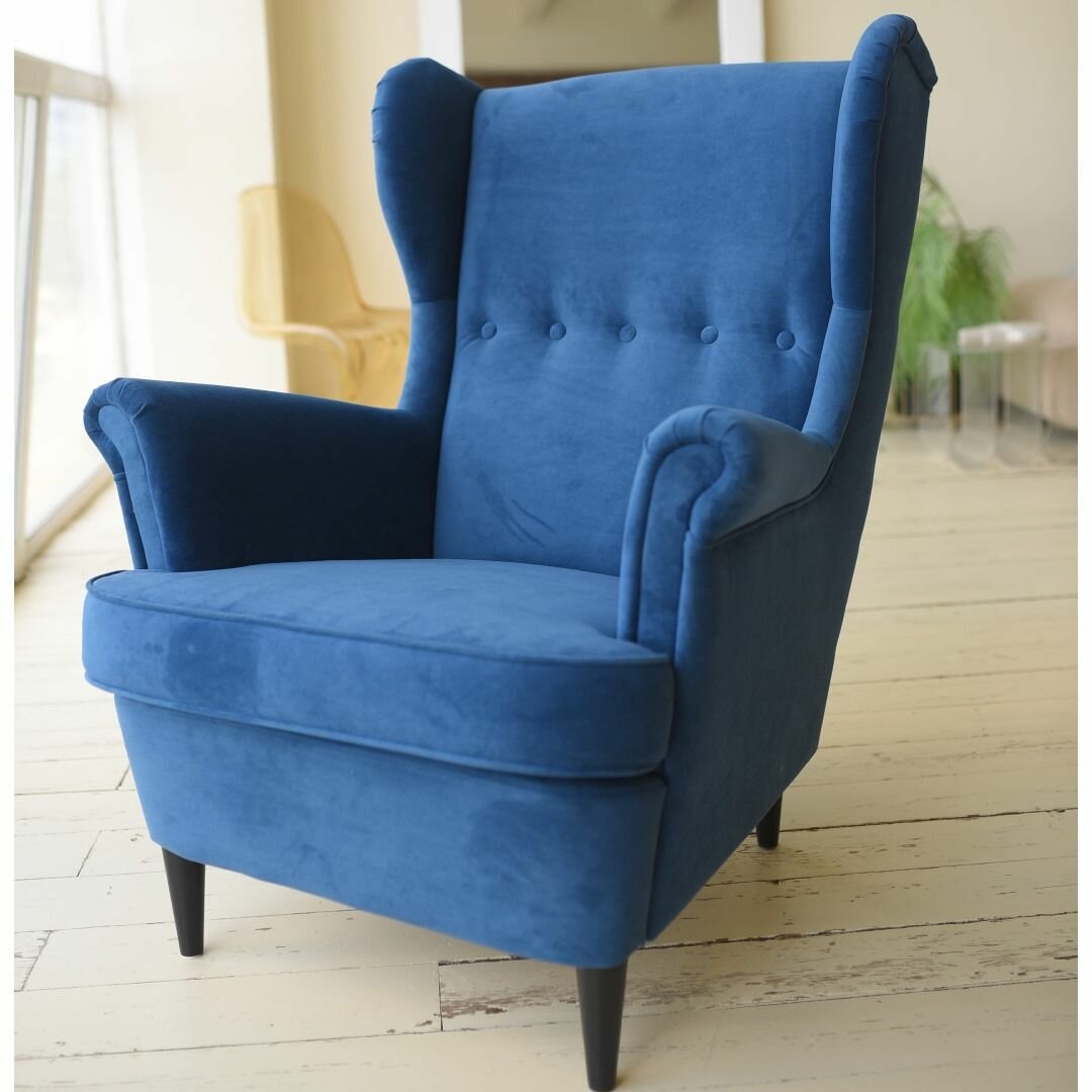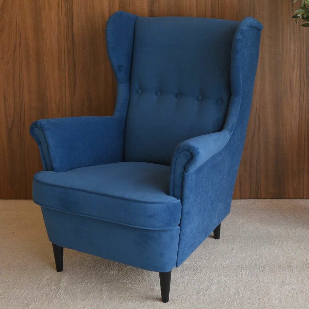 Купить Мягкое кресло с высокой спинкой страндмон (стрэнд) ULTRA MIDNIGHT, велюр, тёмно-синий