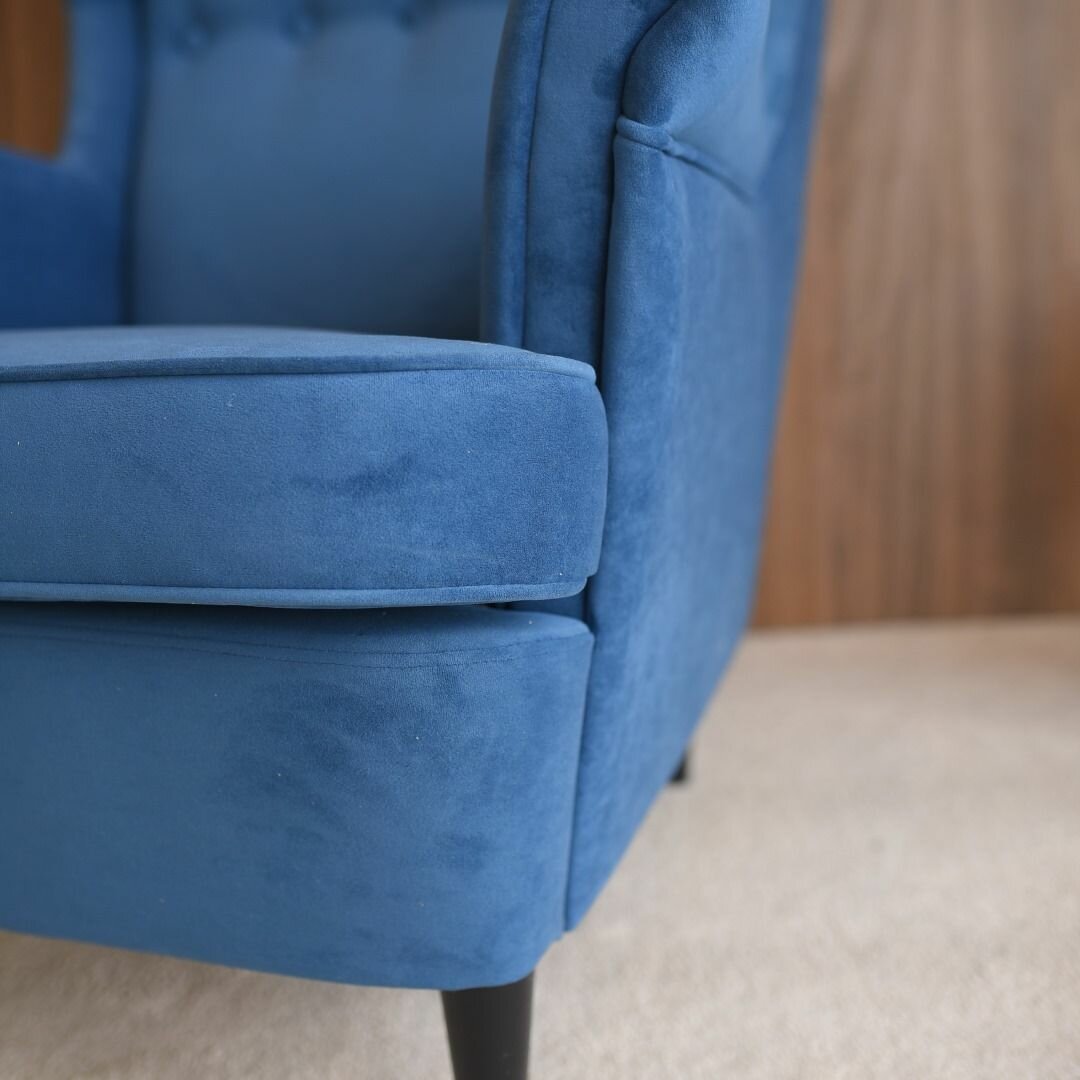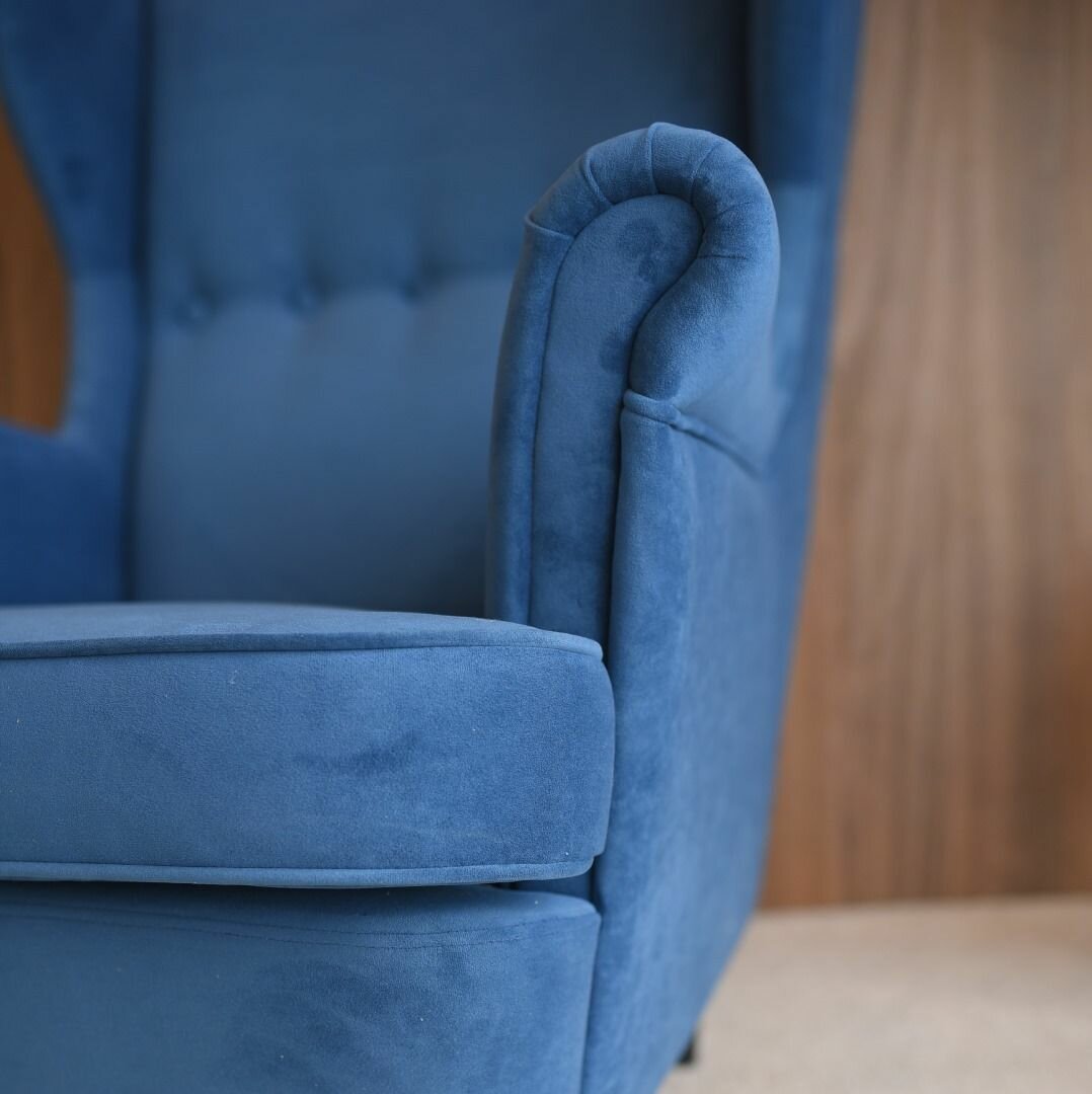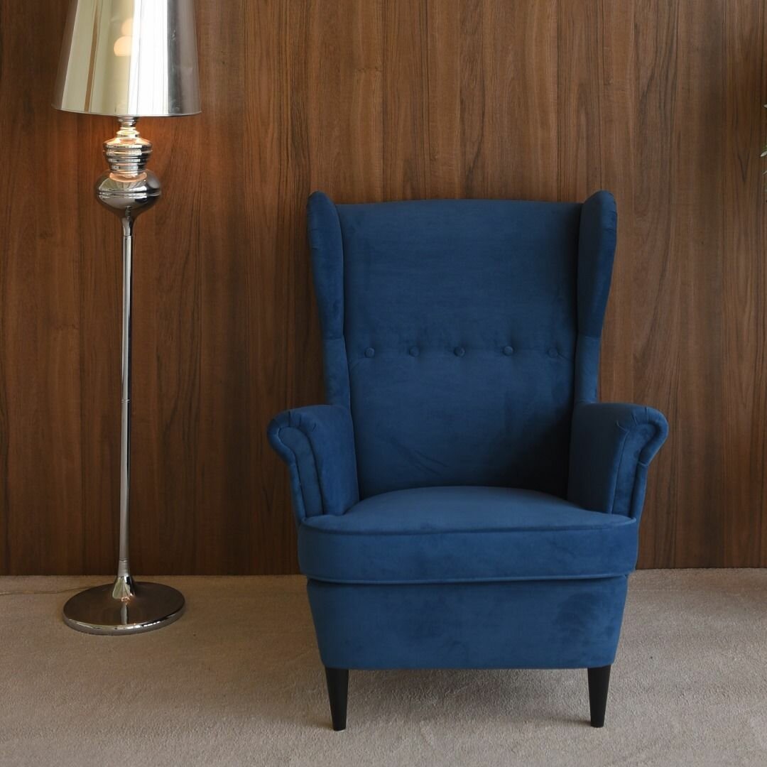 Купить Мягкое кресло с высокой спинкой страндмон (стрэнд) ULTRA MIDNIGHT, велюр, тёмно-синий