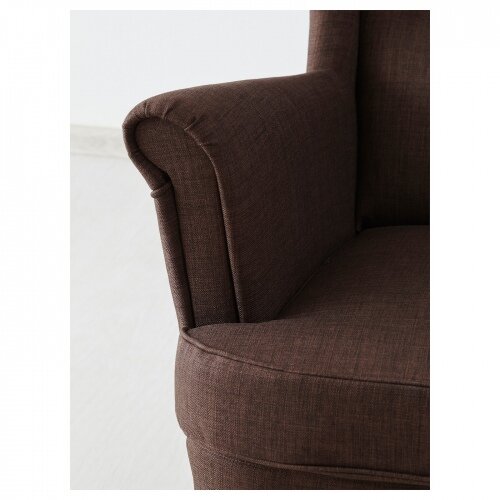 Мягкое кресло с высокой спинкой СТРЭНД (STRANDMON), рогожка, коричневое