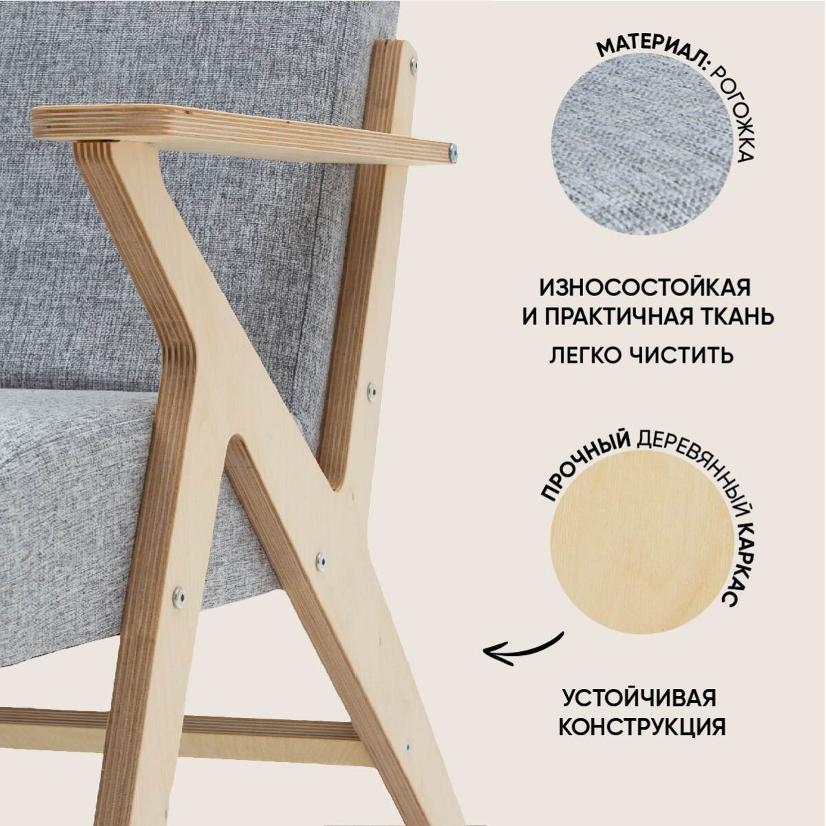Кресло для отдыха "Винтаж 2" бежевый + светлый дуб