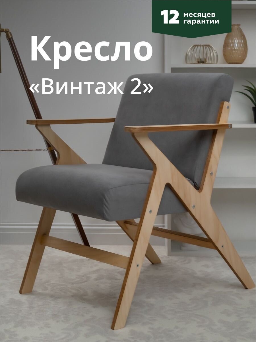 Купить Кресло для отдыха "Винтаж 2" серый + светлый дуб
