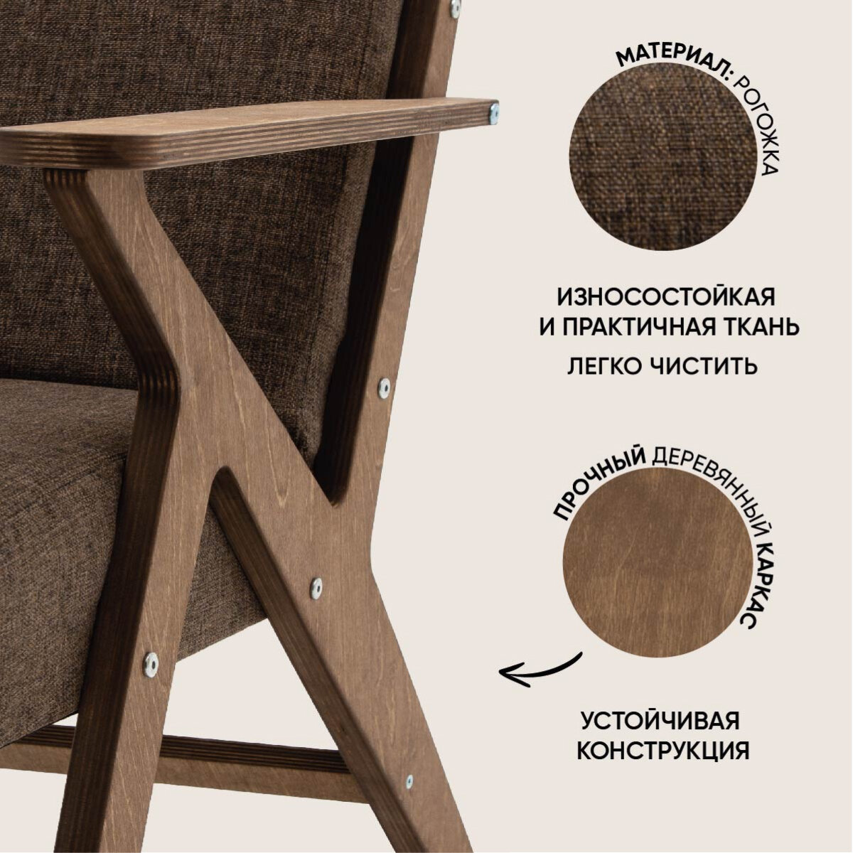 Кресло для отдыха "Винтаж 2" бежевый +темный дуб