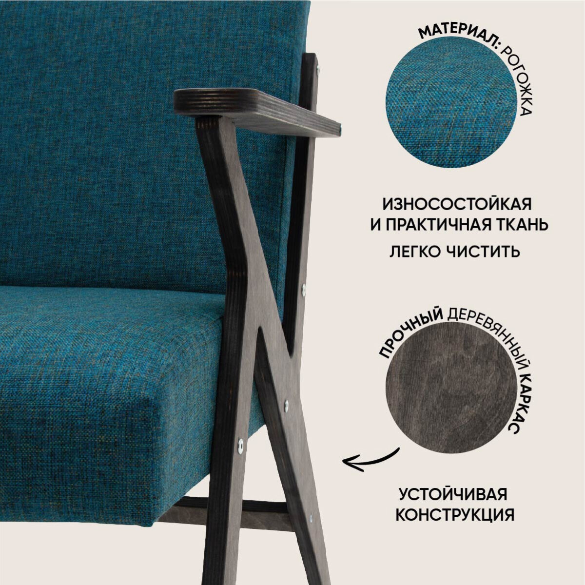 Кресло для отдыха "Винтаж 2" бежевый + светлый дуб