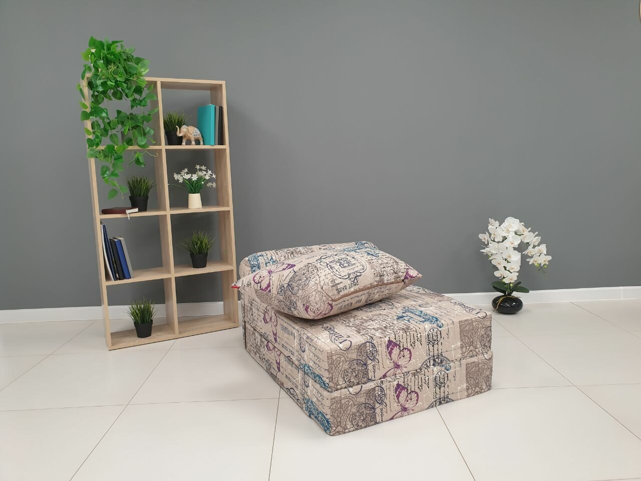 Однотонное бескаркасное раскладное кресло- кровать,акробат кашемир