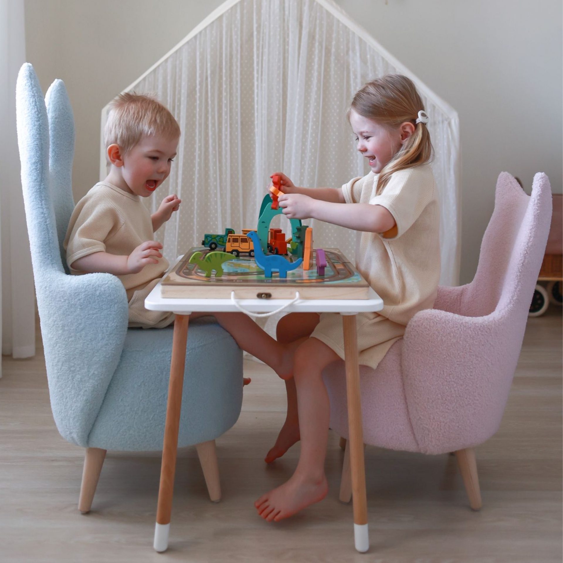 СохранитьПуфик со спинкой в прихожую DPkids Зайчик банкетка в комнату в кухню голубой букле для балкона лоджии интерьерный декор для дома для парикмахерская ресторана форма цилиндр подставка для ног интересное: