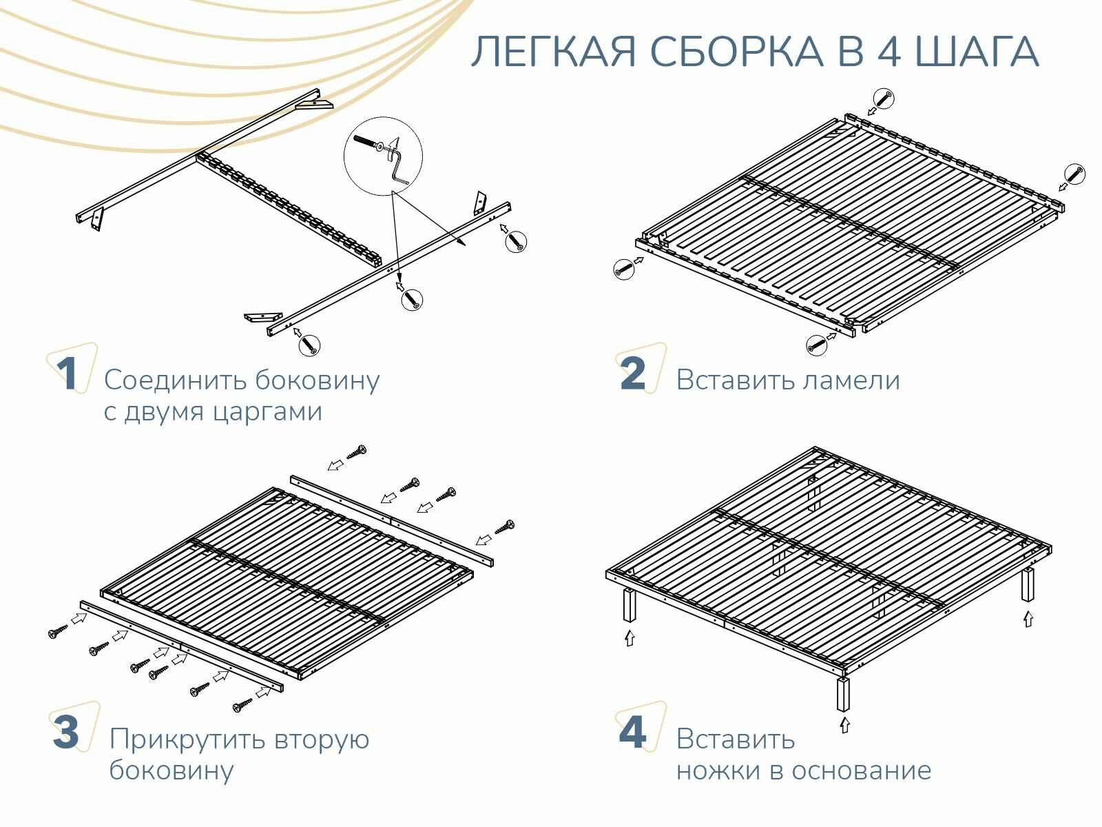 | Дополнительная информация | Ортопедическое основание для матраса с березовой рамой и березовыми латофлексами, сечение рамы — 2,5х5 см. Высота основания со стандартными ножками - 27 см. |