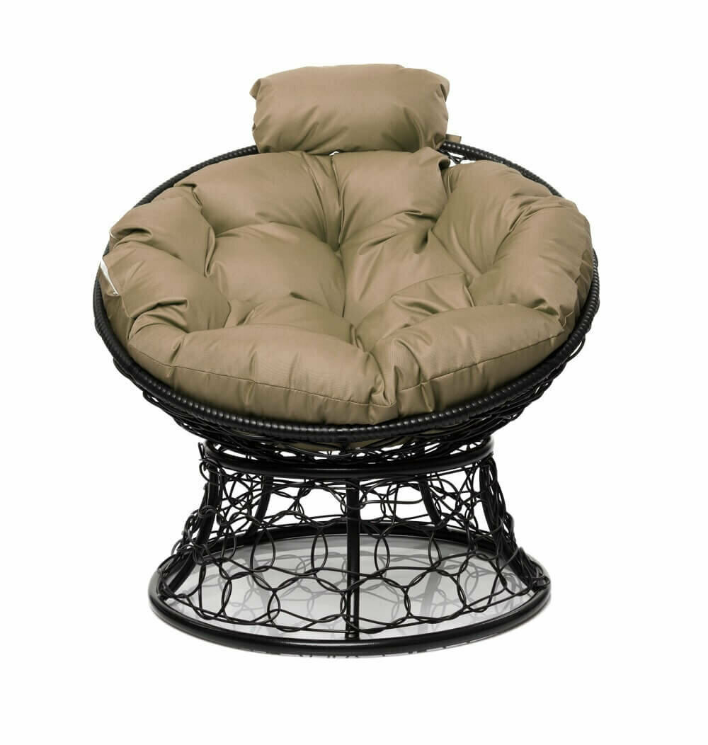 Купить Кресло детское "Папасан" мини с ротангом чёрное / бежевая подушка M-Group