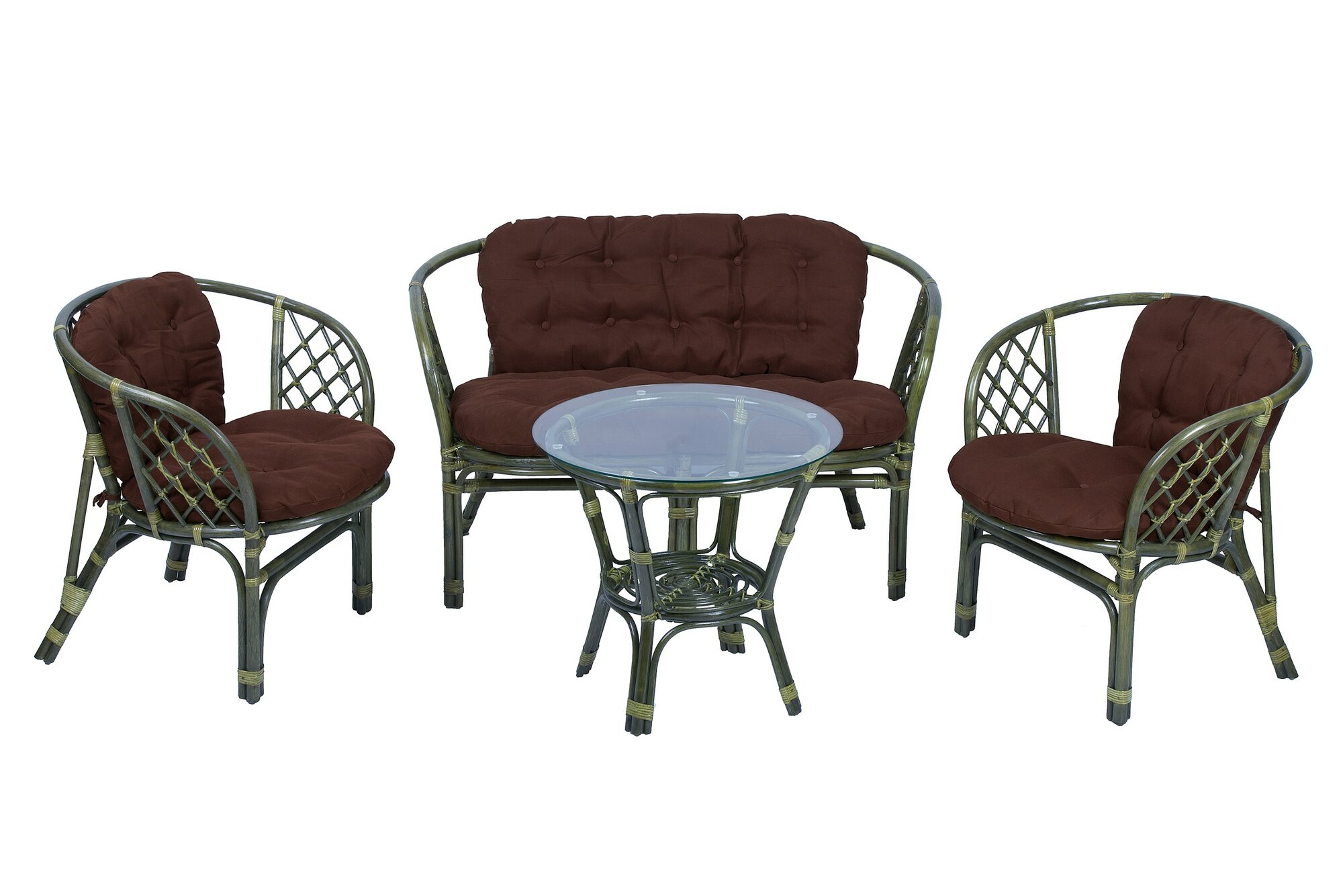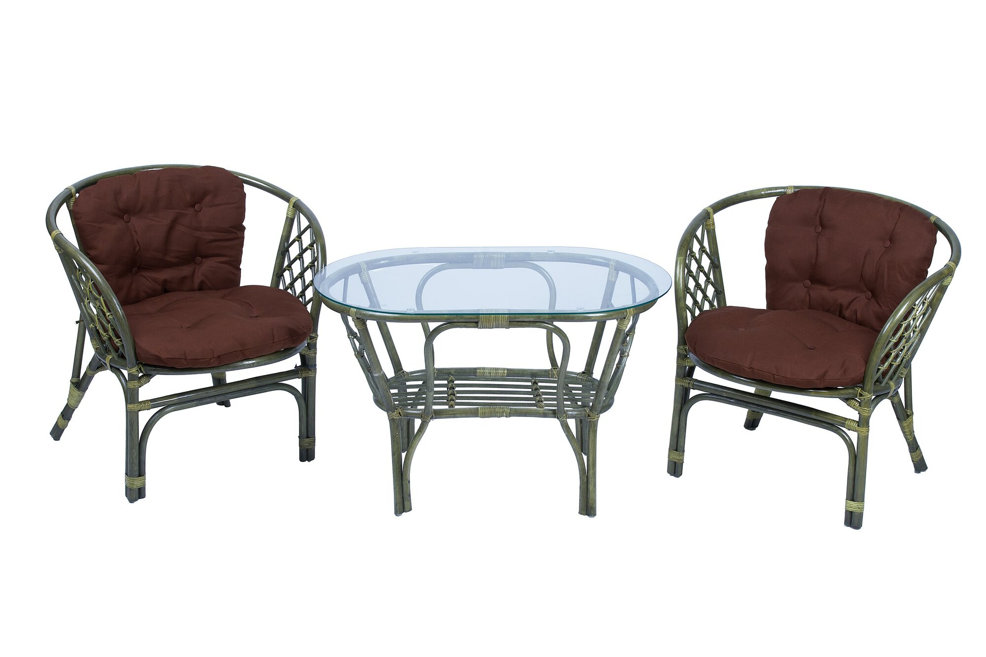 Кресло из натурального ротанга с кофейной подушкой Багама, цвет олива интересное: