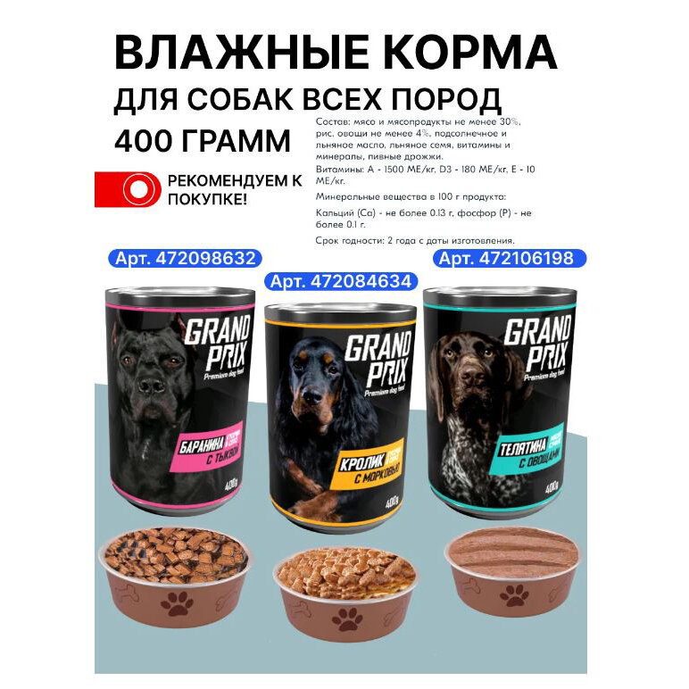 | Минусы: | Корм очень большой для мелких пород вряд ли подойдёт. |