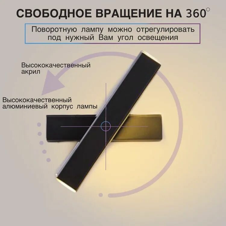 Светильник настенный поворотный светодиодный Onyx Black 345х56 мм 12W (теплый свет 3000K) интересное: