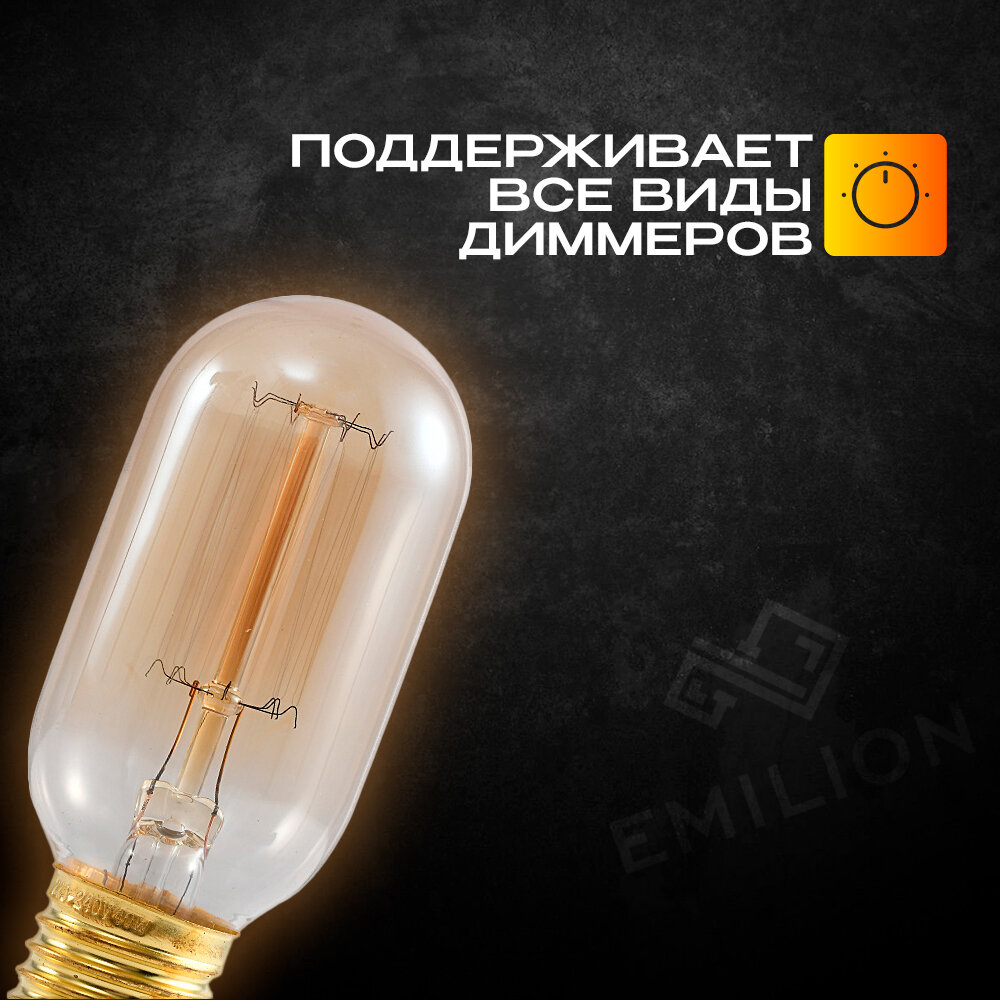 Лампа (лампочка) накаливания Эдисона Emilion Loft Edison T45 (E27, 40Вт, желтый свет) интересное: