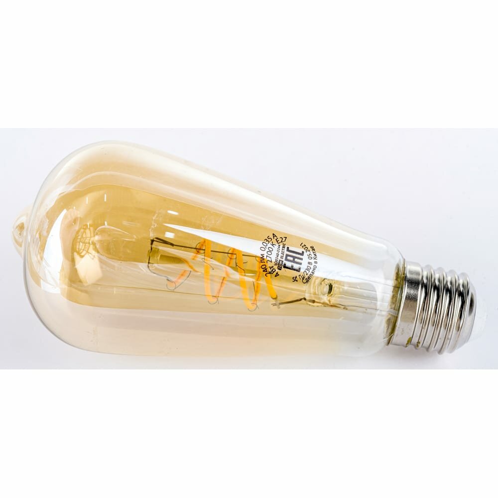 Лампа светодиодная «Винтаж» золотистая ST64 (со спиралью), 4 Вт, 230 В, 2700 К, E27 (конус) TDM интересное: