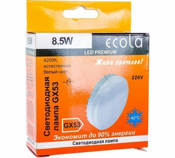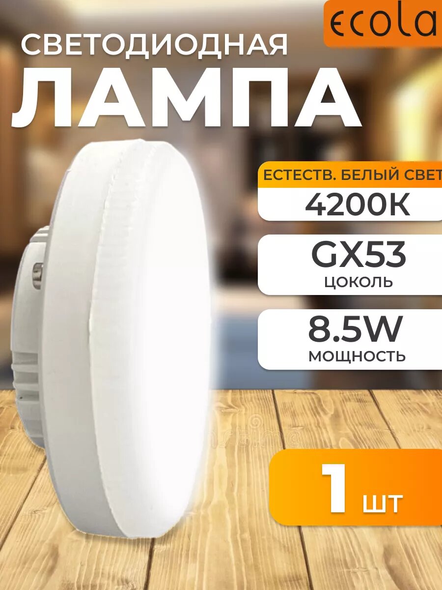 Лампочка светодиодная 1шт, GX53 Ecola LED Premium, 8,5W Матовое стекло (композит) 4200K Дневной белый свет интересное: