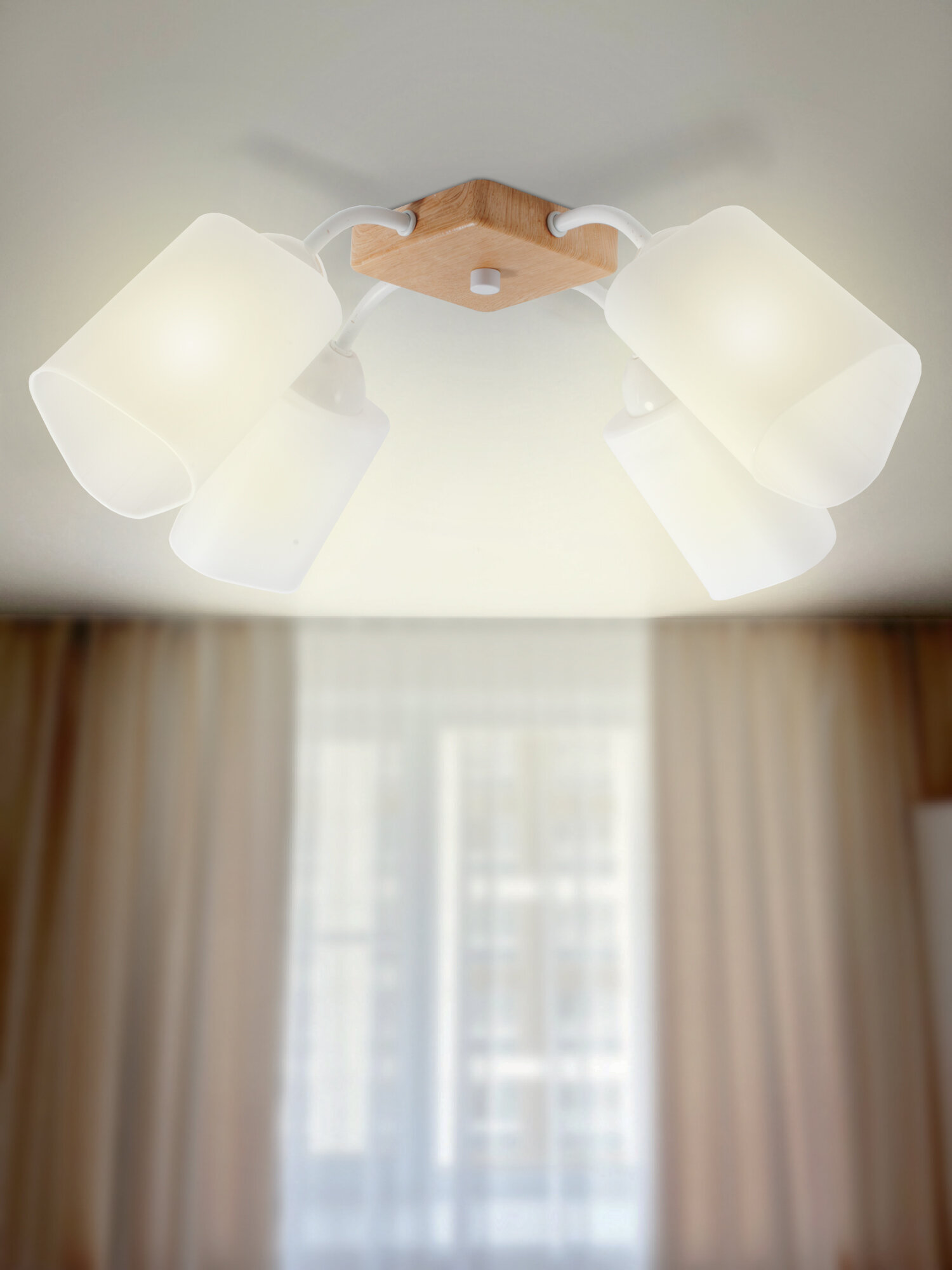 Купить Потолочная люстра "Ханна" 4 х E27 х 40 Вт, белый/натуральный, Дубравия