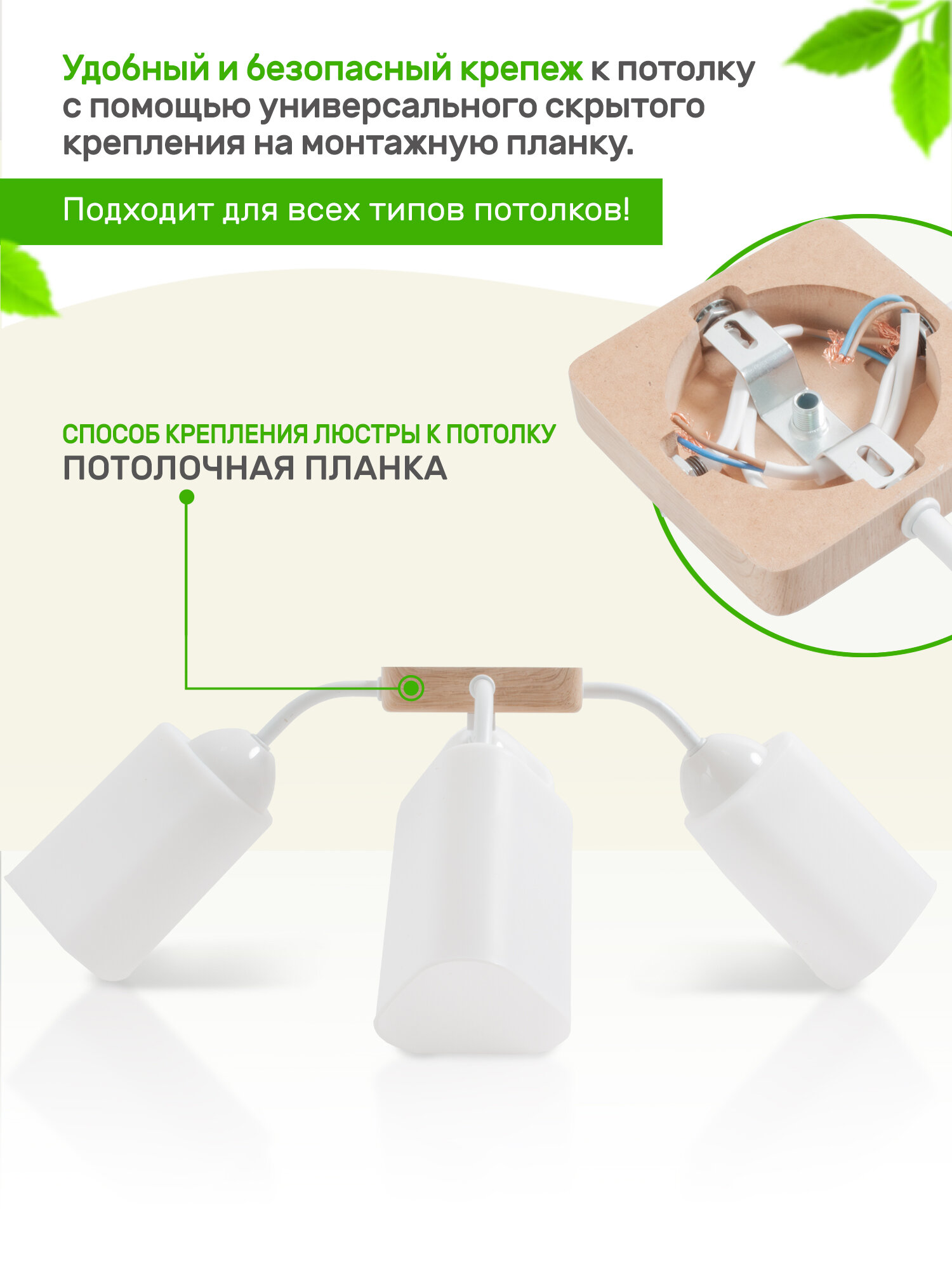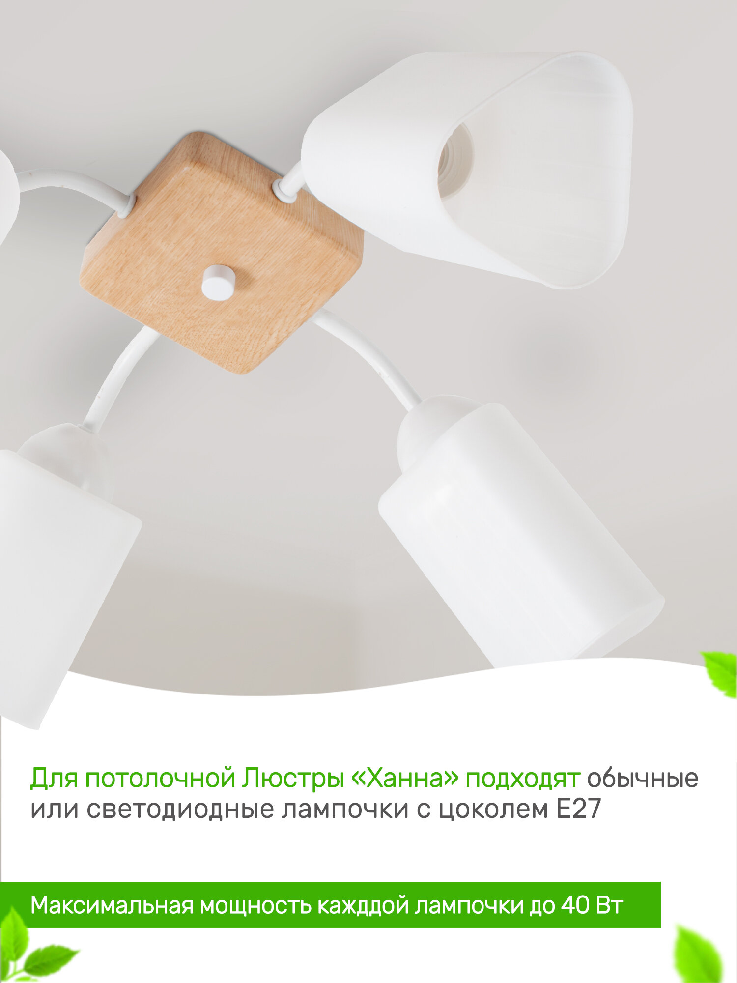 Потолочная люстра "Ханна" 4 х E27 х 40 Вт, белый/натуральный, Дубравия интересное: