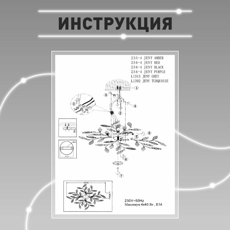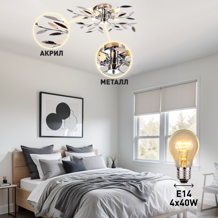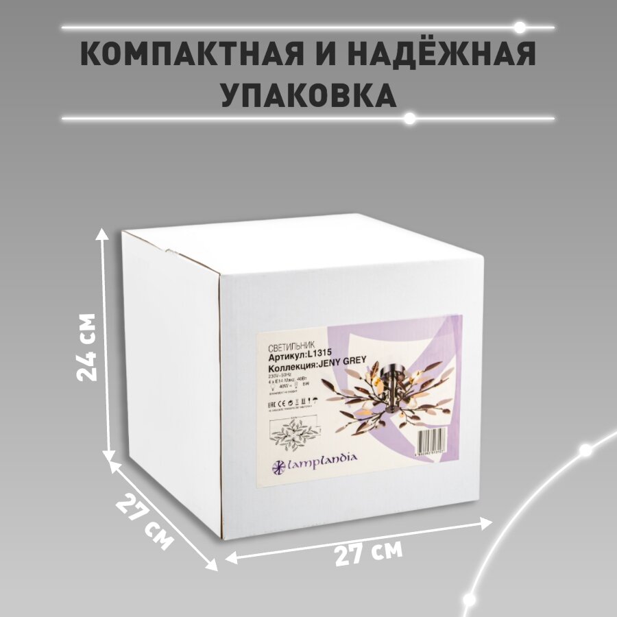 Люстра потолочная Lamplandia L1315 JENY GREY, E14*4 макс 40Вт интересное: