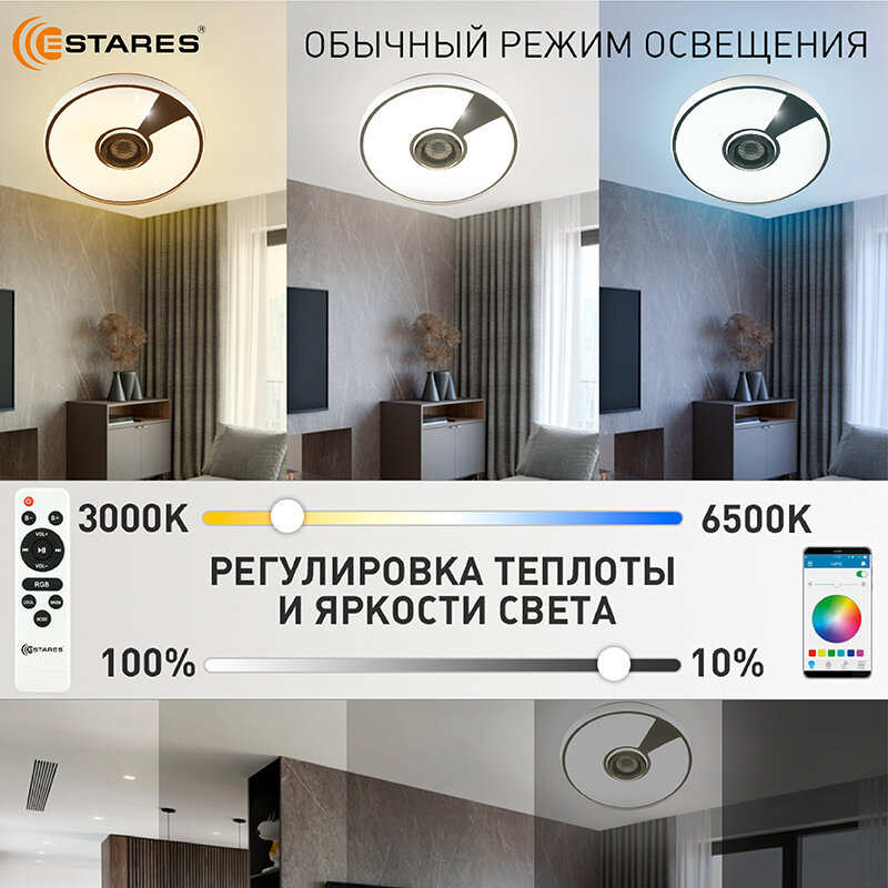 Управляемая потолочная музыкальная светодиодная люстра Estares SONG RGB 80wt интересное: