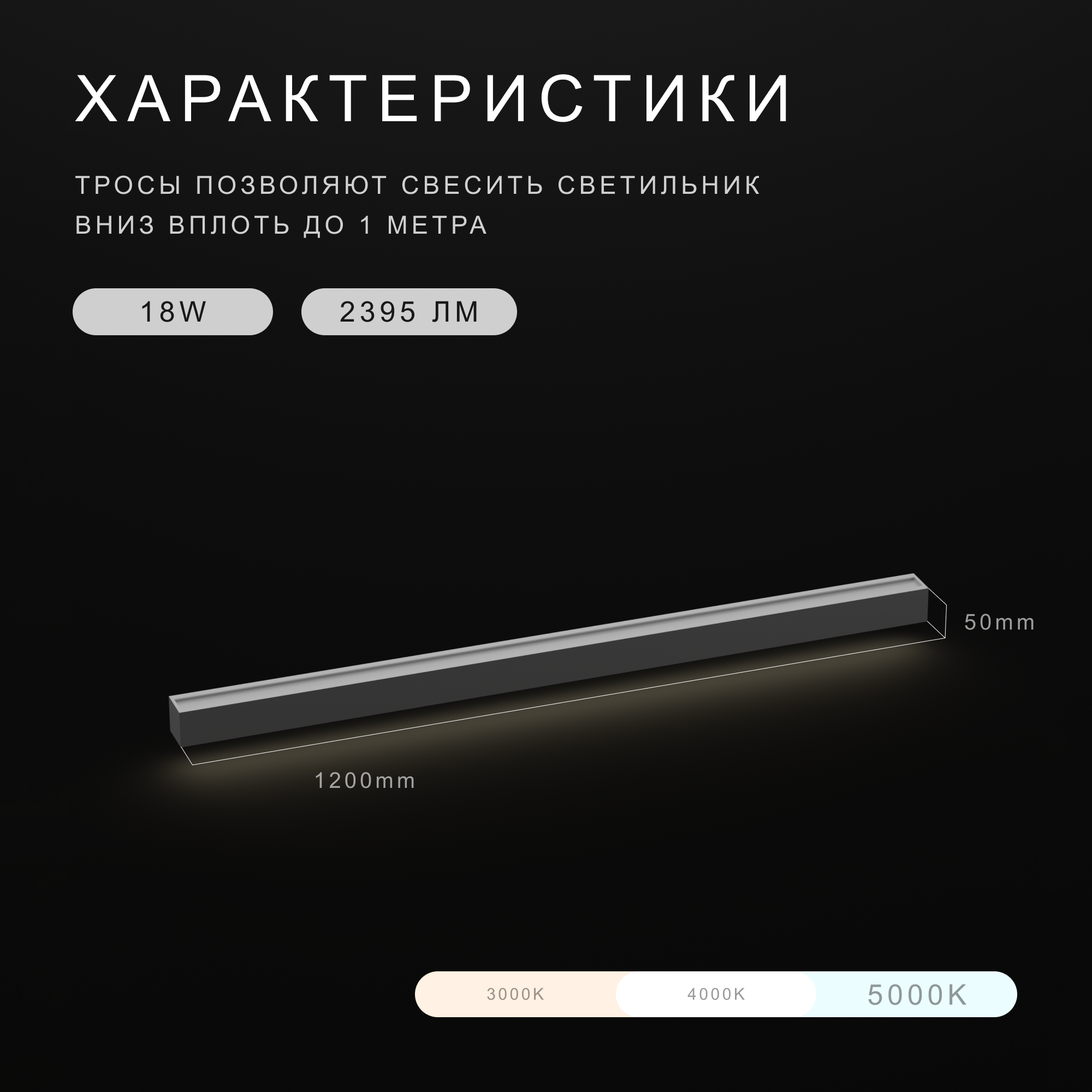Подвесной светильник "Светолиния", 4000K, 18 Вт, 120*5*5 см, люстра светодиодная, лампа черная