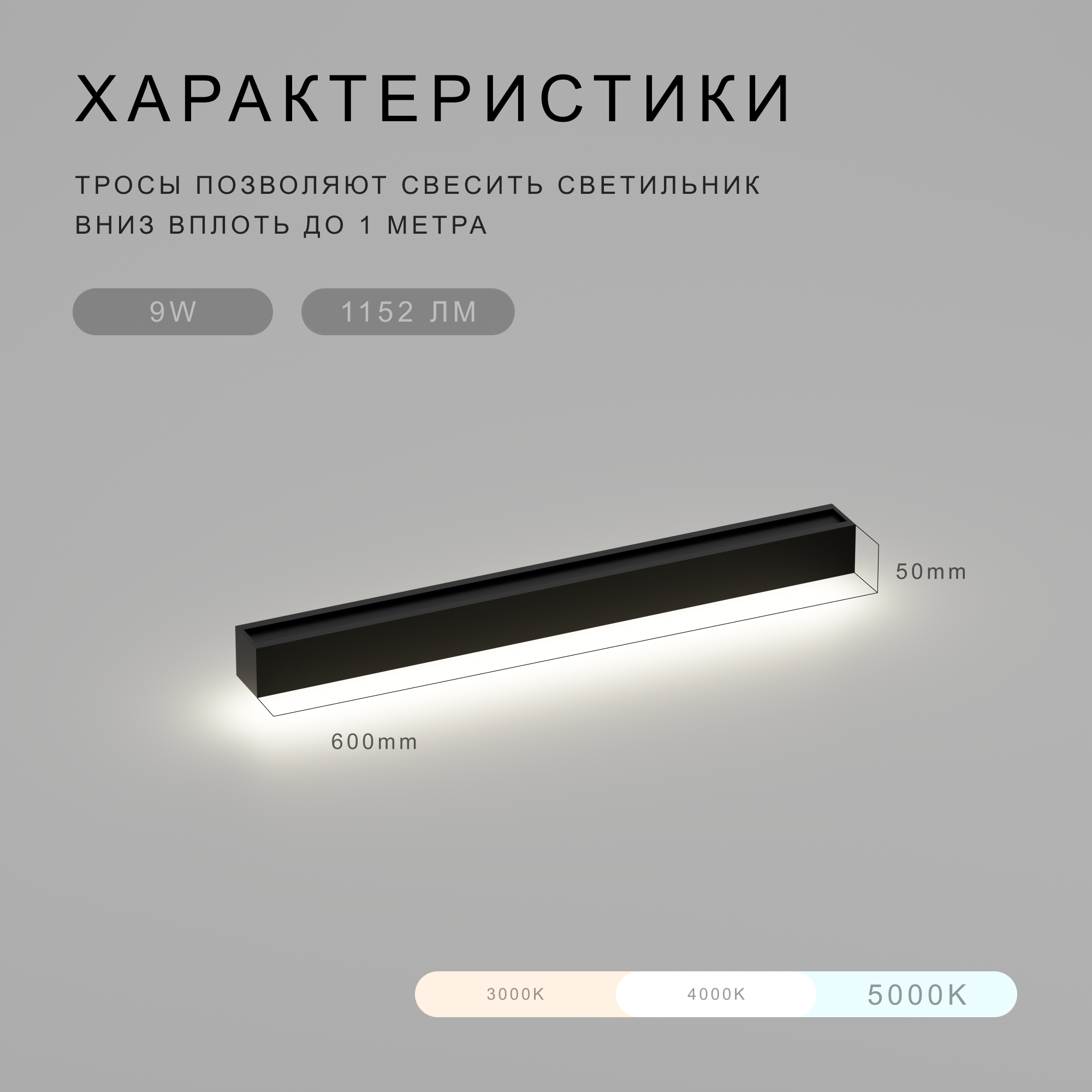 ООО Лидер Светильник линейный подвесной 600x50x50 4000K 9W Черный М0000037861