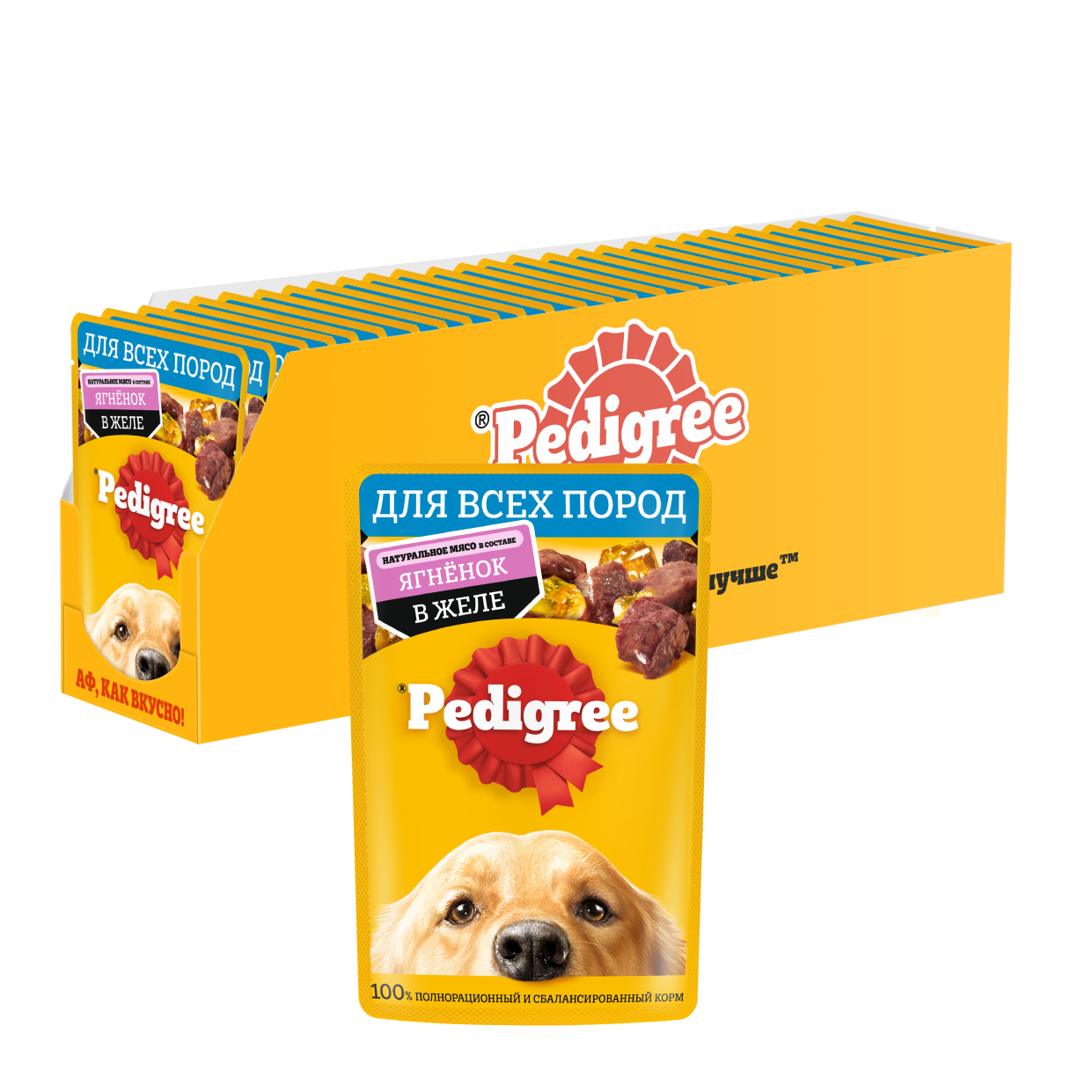 Влажный корм Pedigree для взрослых собак всех пород, с ягненком в желе, 85г х 28шт
