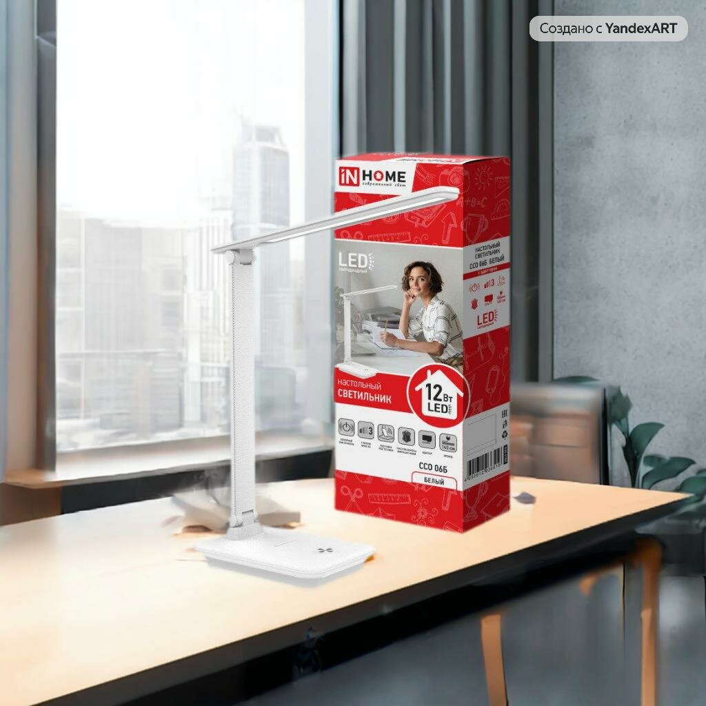 Светильник светодиодный настольный IN Home ССО 08Б 12Вт 3000-6500К 600лм сенсор-диммер с адаптером бел. 4690612036557