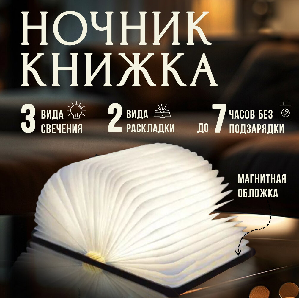 СохранитьНочник светодиодный аккумуляторный "Книжка", размер S (10x8 см) интересное: