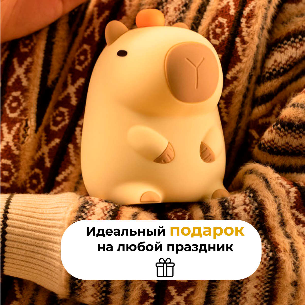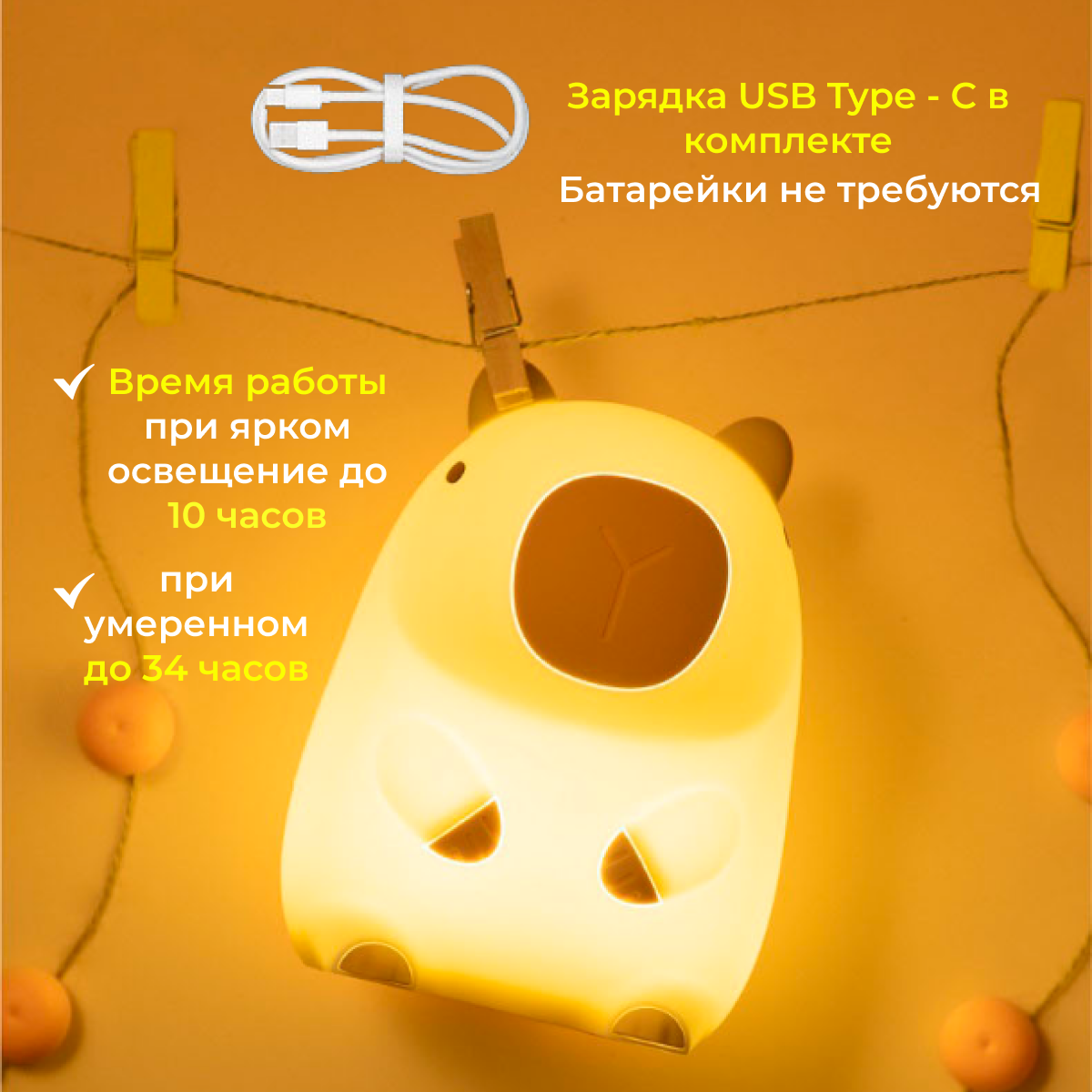Ночник капибара с таймером выключения, с встроенным аккумулятором, тёплый свет интересное: