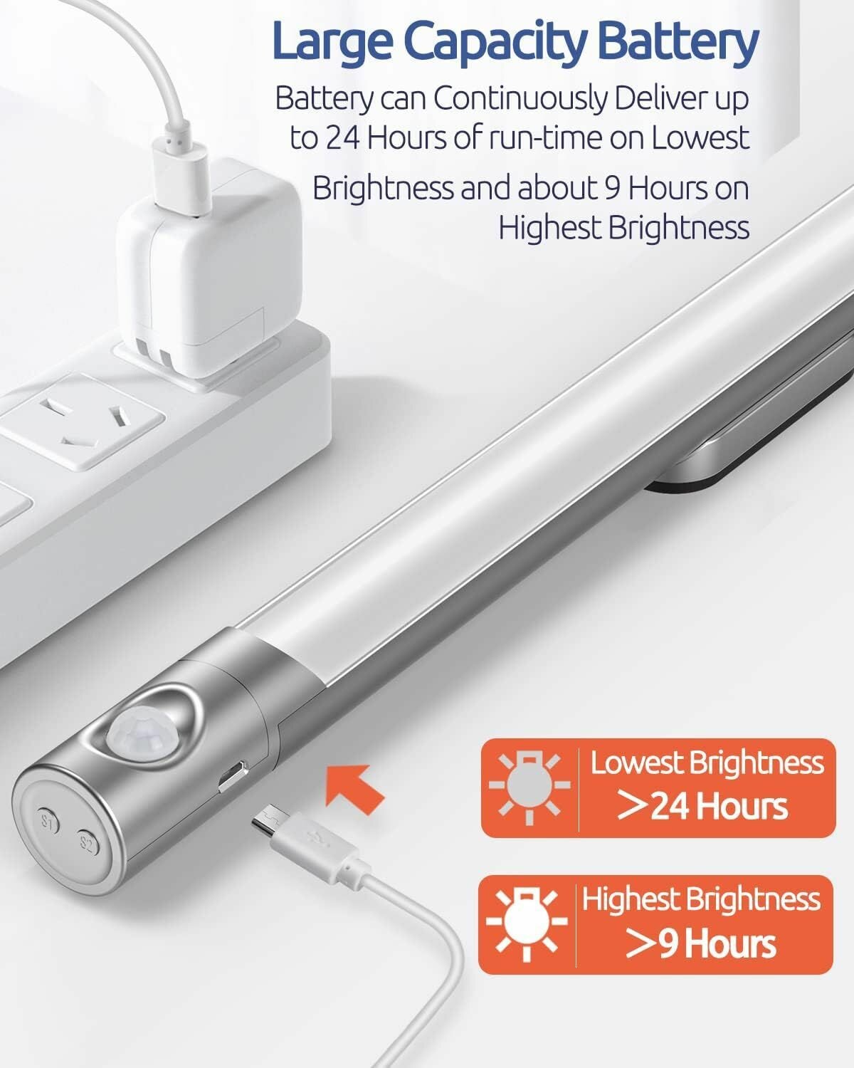 Купить Светильник с датчиком движения, беспроводной светодиодный USB-ночник на аккумуляторе, перезаряжаемая LED лампа белый холодный, 40 см Белый