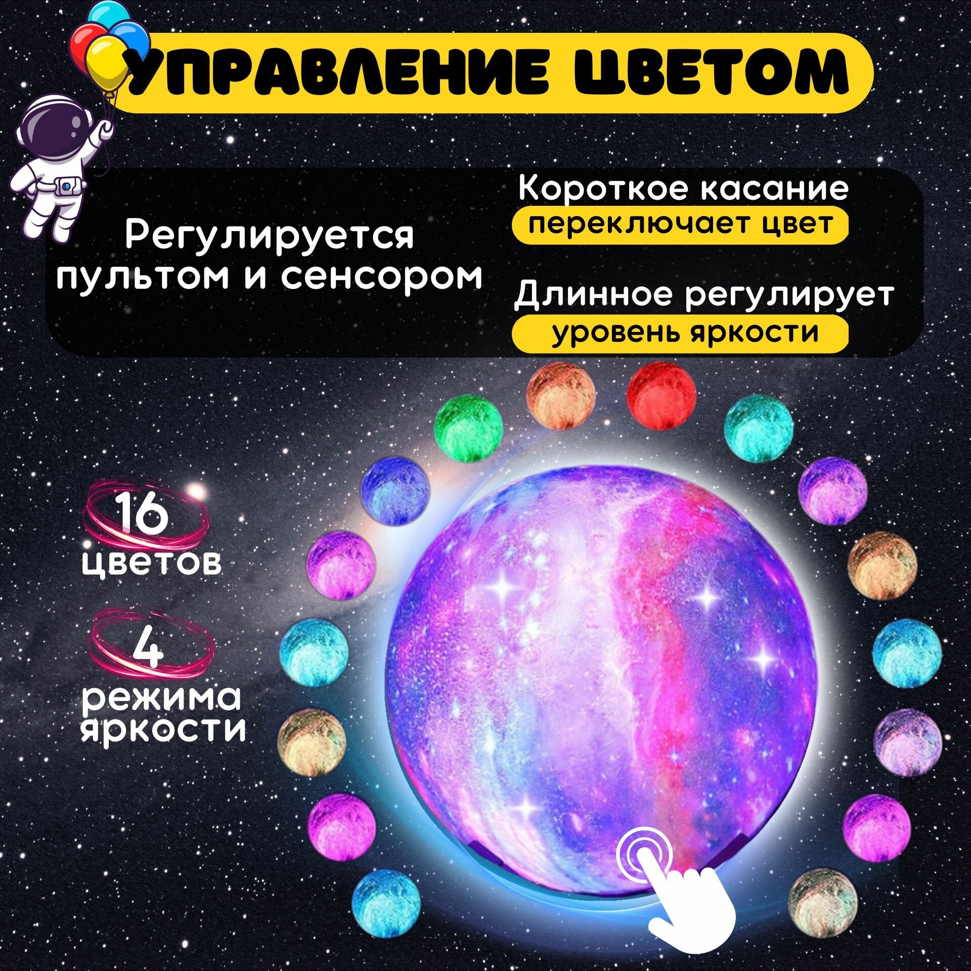 | Особенности | беспроводной / крепление в комплекте / режим ночника / смена цвета освещения |