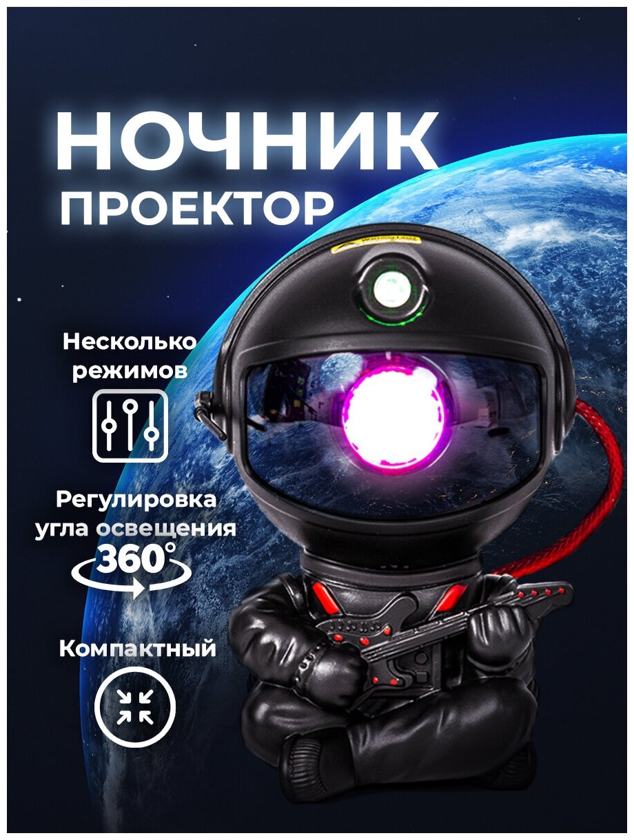 Ночник проектор звездного неба (черный) Hans&Helma пульт светильник космонавт светодиодный LED лампа для дома детской вечеринки дискотеки /настольный интересное: