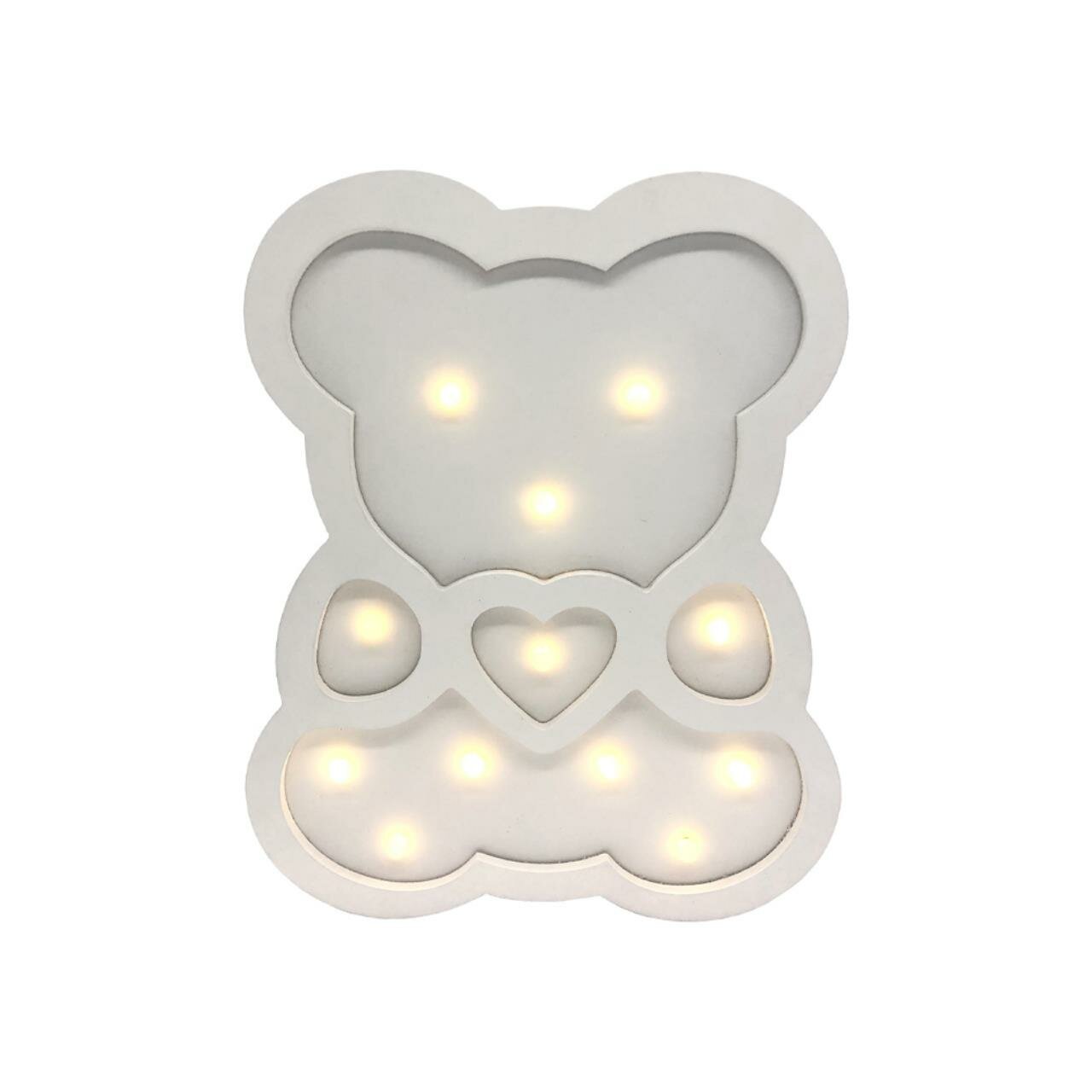 Купить Светодиодный ночник для детей Мишка, цвет свечения теплый белый, питание 2хААА, материал МДФ, размеры 240х33х298мм, 12-176-111