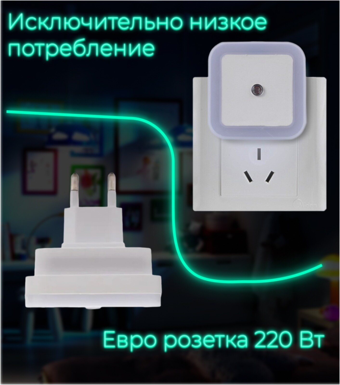 | Дополнительная информация | Ночник реагирует на темноту и включается.При освещении ночник не работает.При длительном отсутствии дома,ночник убирать из розетки. |