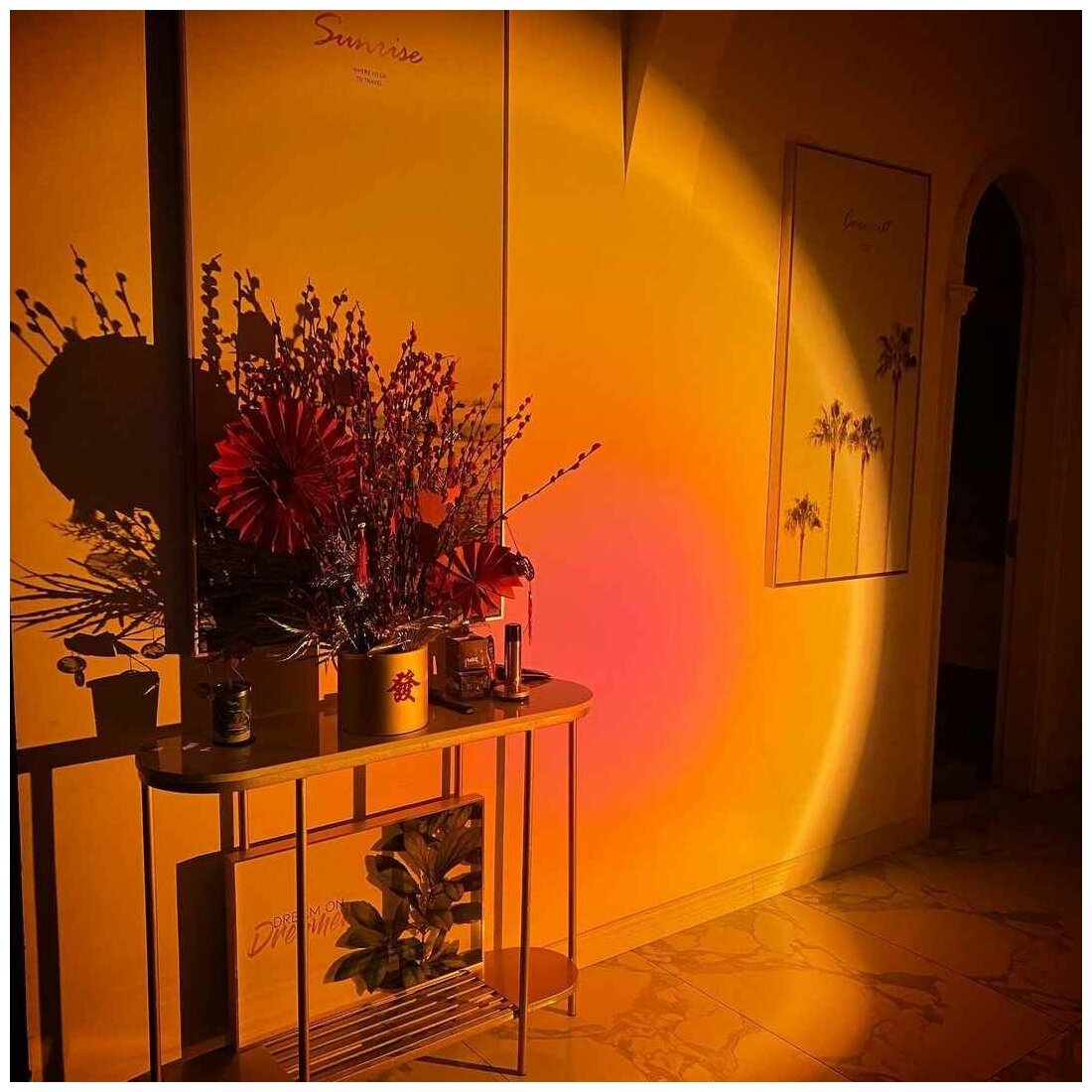 Лампа луна для тик тока Sunset Lamp, 4 цвета, USB, на металлическом штативе, проектор заката, атмосферный светильник интересное:
