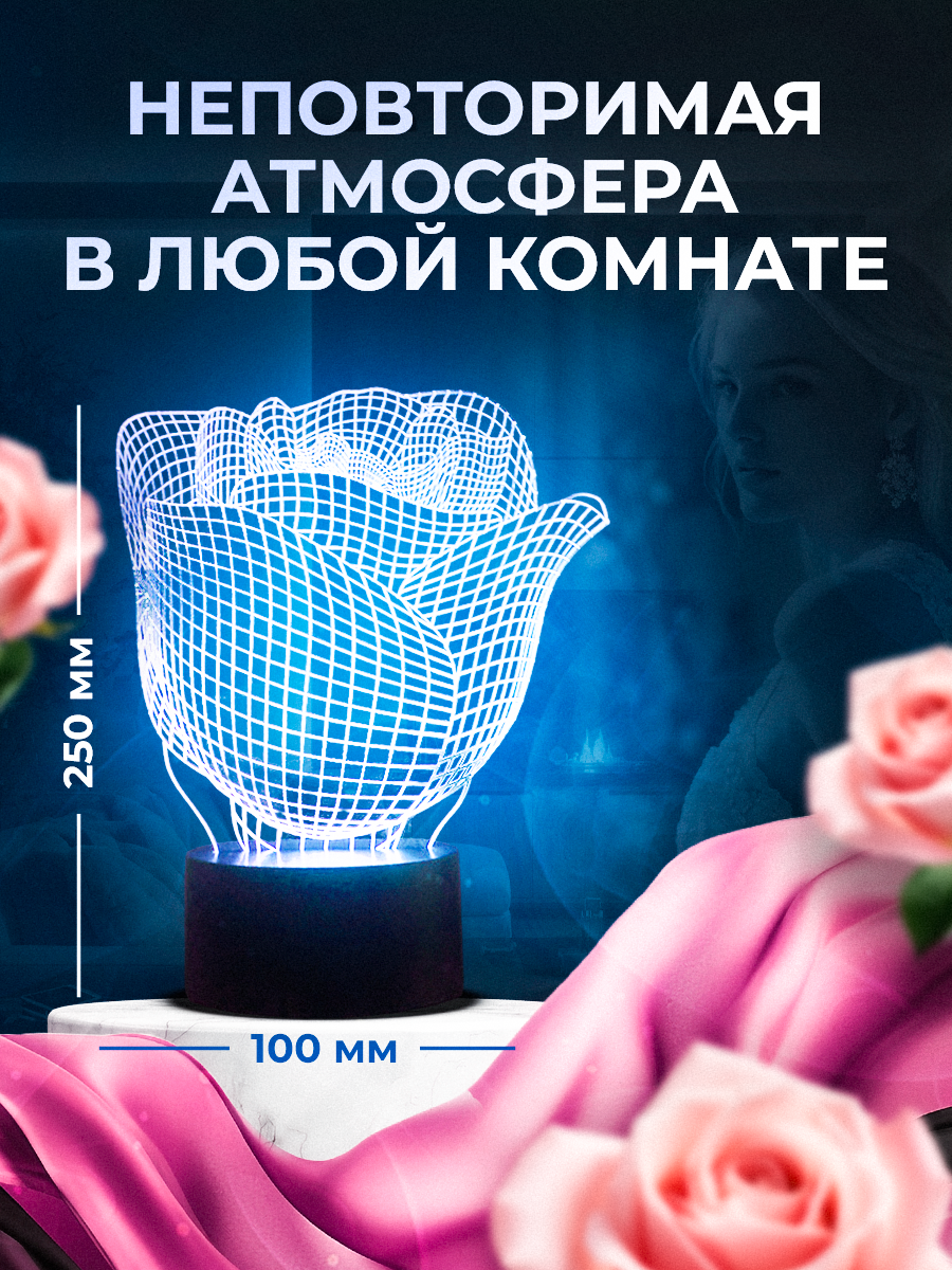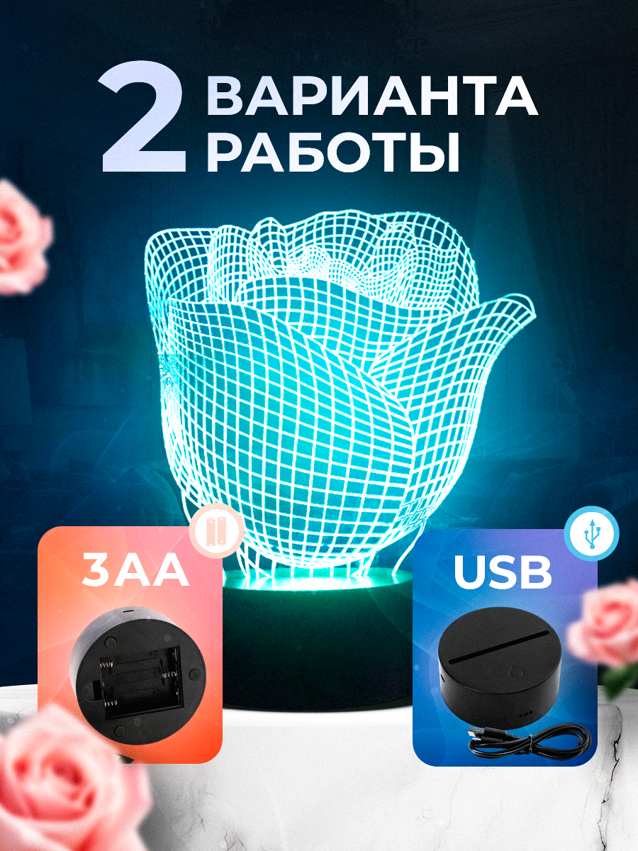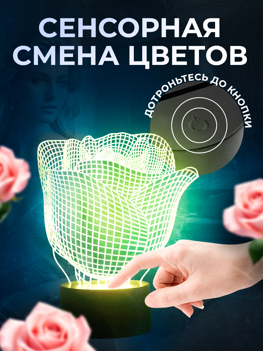 Ночник с 3D эффектом Camelion Роза подарок на 8 марта интересное: