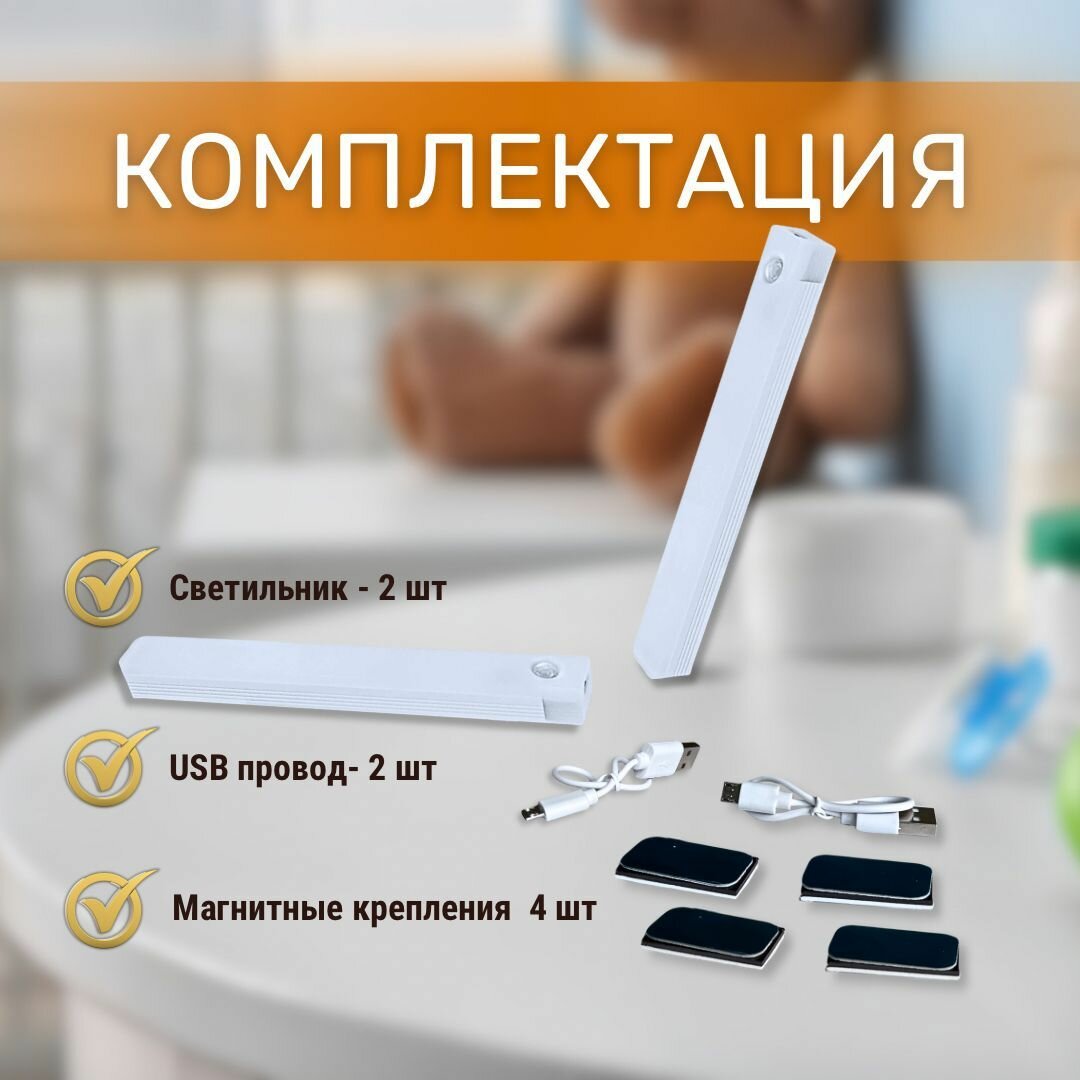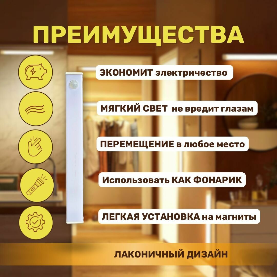 Светодиодный светильник /подсветка с датчиком движения 20 см / Аккумуляторный, теплого свечения интересное: