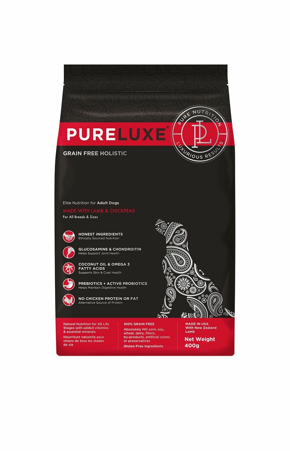 Сухой корм PureLuxe, со вкусом Ягненка и Нута, для собак всех пород, 400гр