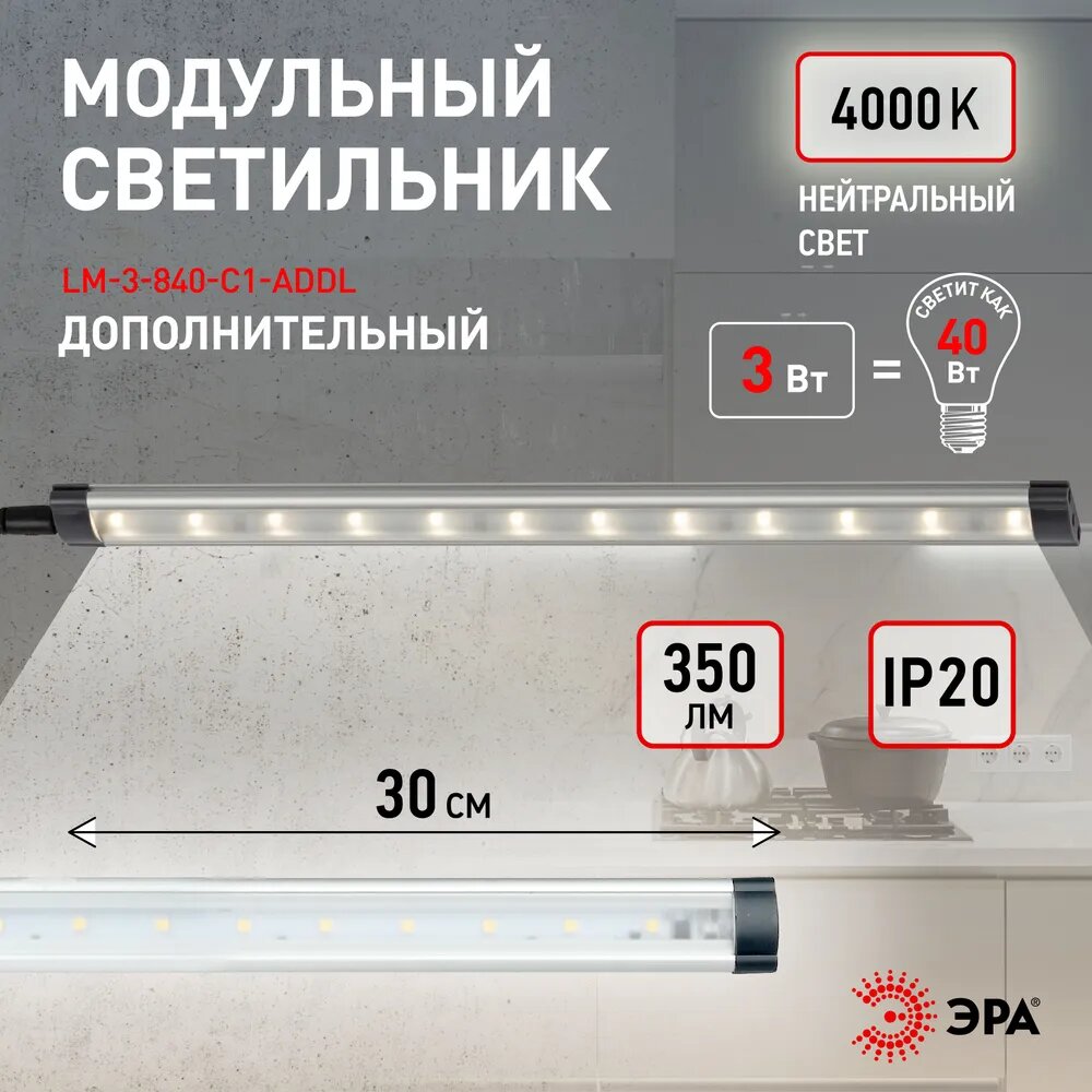 Купить Светильник светодиодный накладной ЭРА LM-3-840-C1-addl 3Вт 4000К (нейтральный белый свет) 30см