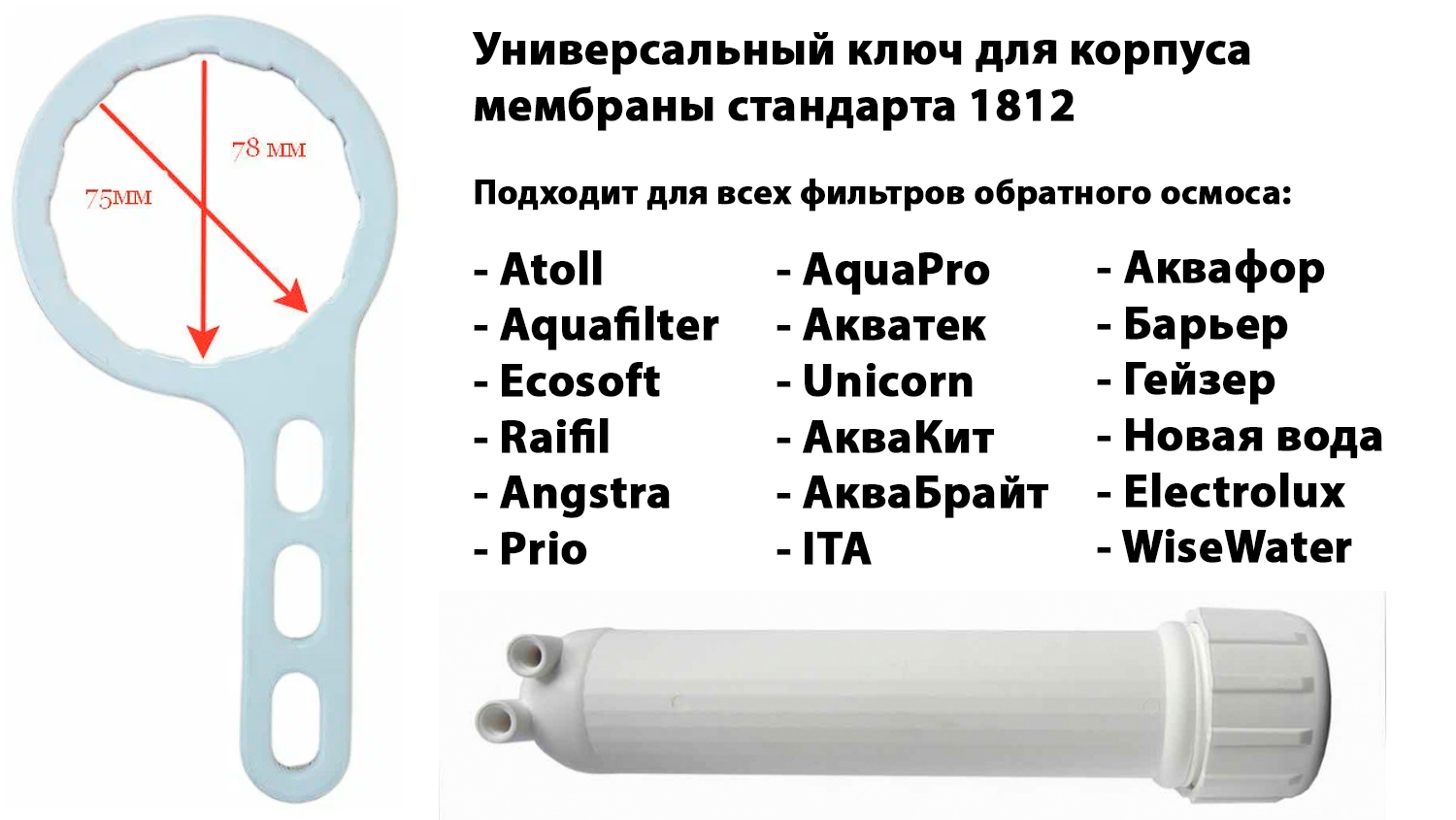Универсальный ключ для корпуса мембраны UFAFILTER 1812 (Подходит для всех фильтров обратного осмоса) интересное: